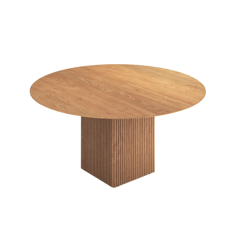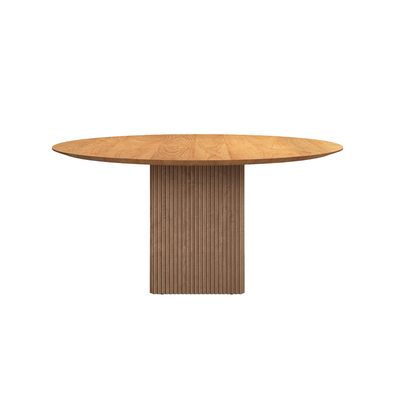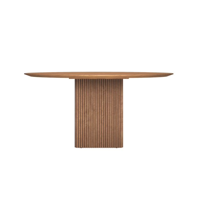 Le plateau et les pieds de Ten sont en bois massif, mais elle réussit à donner une sensation une légèreté, soulignée par les détails artisanaux raffinés comme les belles rainures verticales des pieds et le plateau de table distinctif aux formes organiques. La forme légèrement incurvée du plateau de table ne présente aucune ligne droite et, en combinaison avec le bord incliné de la table, il semble que le plateau bouge constamment, ce qui donne à la table Ten une expression unique.