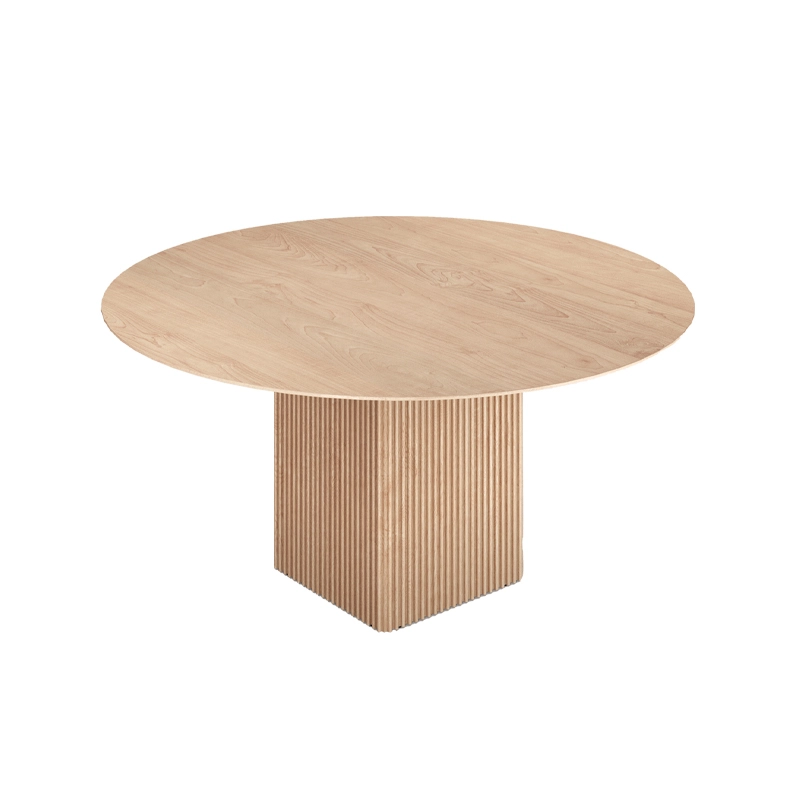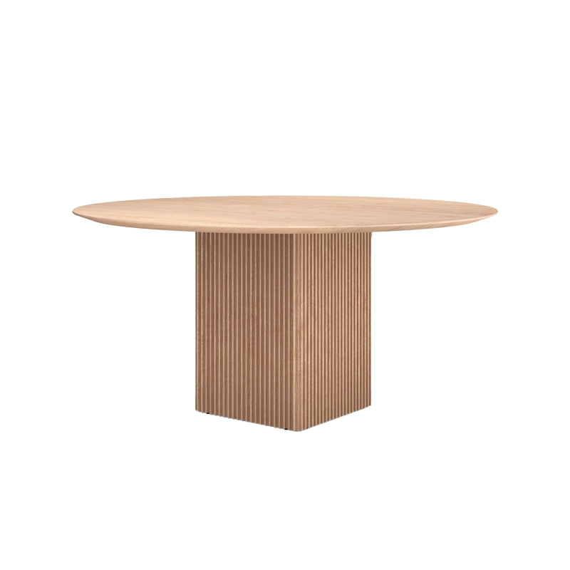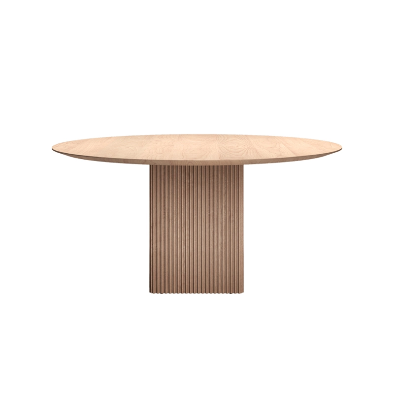 Le plateau et les pieds de Ten sont en bois massif, mais elle réussit à donner une sensation une légèreté, soulignée par les détails artisanaux raffinés comme les belles rainures verticales des pieds et le plateau de table distinctif aux formes organiques. La forme légèrement incurvée du plateau de table ne présente aucune ligne droite et, en combinaison avec le bord incliné de la table, il semble que le plateau bouge constamment, ce qui donne à la table Ten une expression unique.