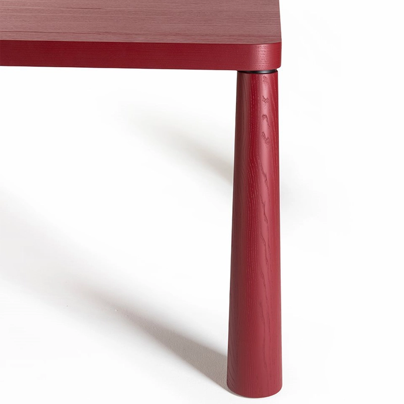 Zanotta, allie élégance et fonctionnalité. Son plateau en bois alvéolaire, doté d'une âme en aluminium alvéolaire, est plaqué de frêne teinté à pores ouverts. Ses pieds en frêne massif teinté, assortis au plateau, offrent deux options de positionnement : alignés avec le plateau ou légèrement en retrait. Avec son design raffiné et ses options de personnalisation, la