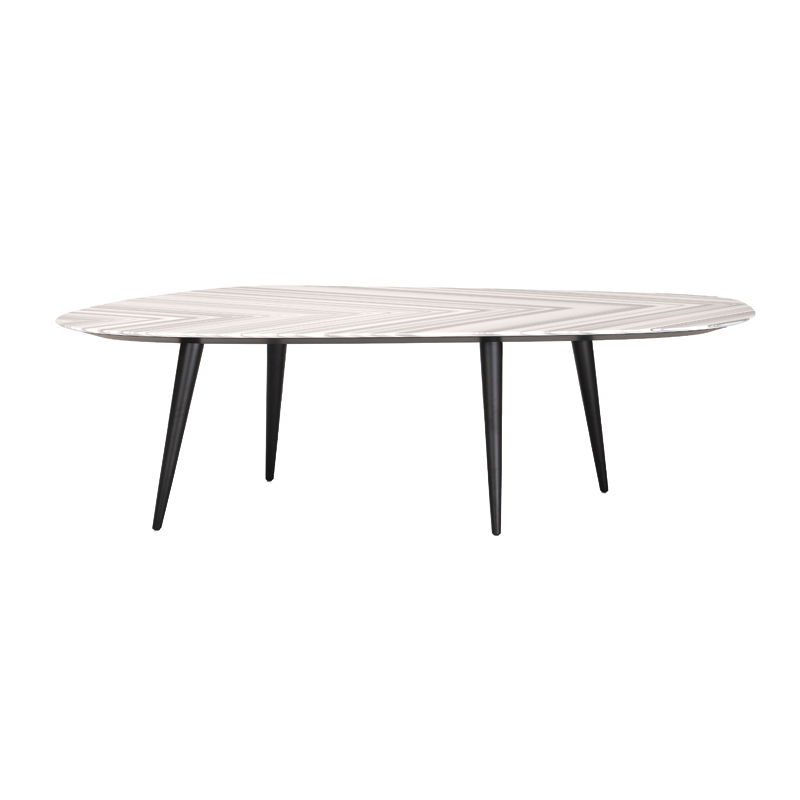 plateau marbre striato olimpico verni mat anti-tâches, sous-plateau mdf, pieds tubes d'acier noir mat