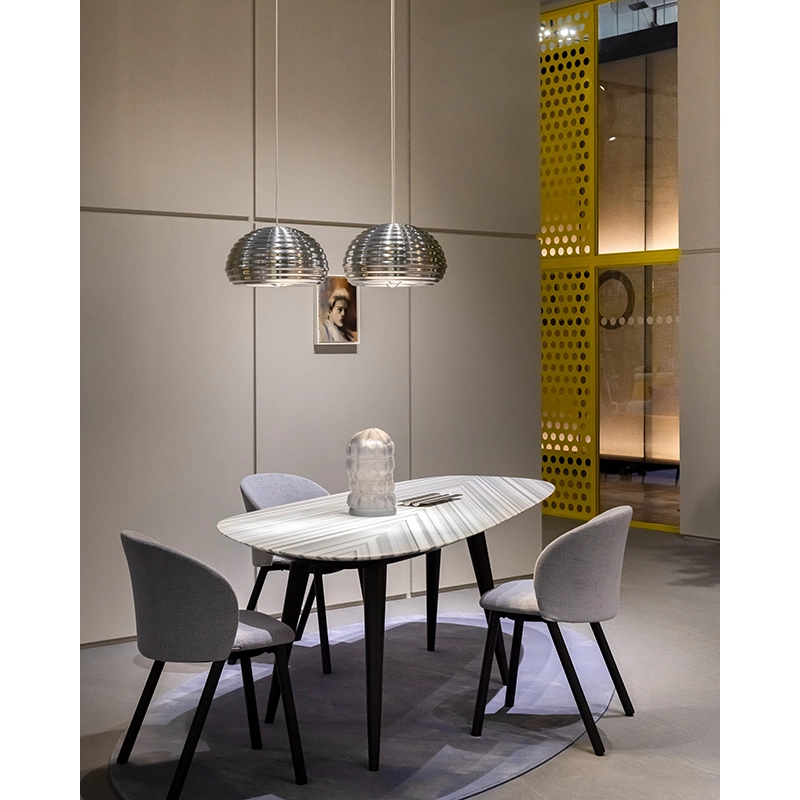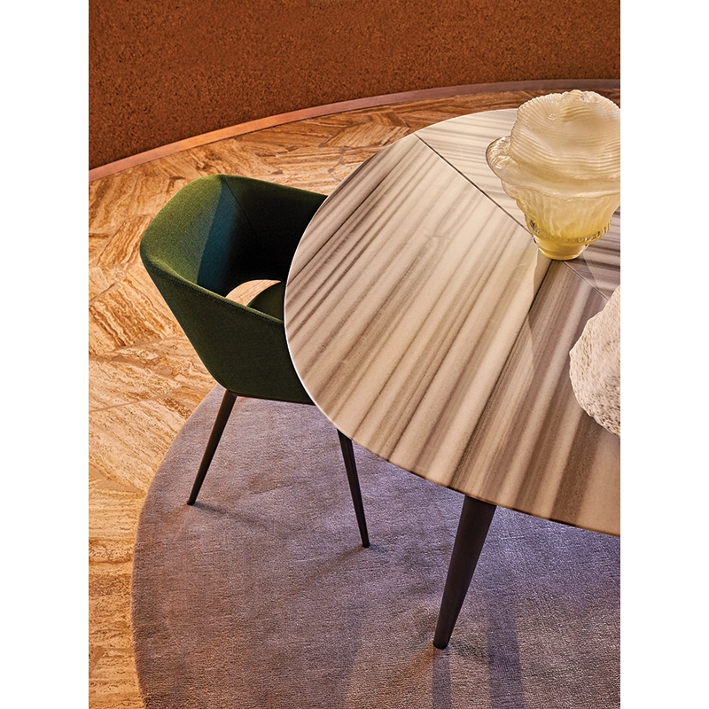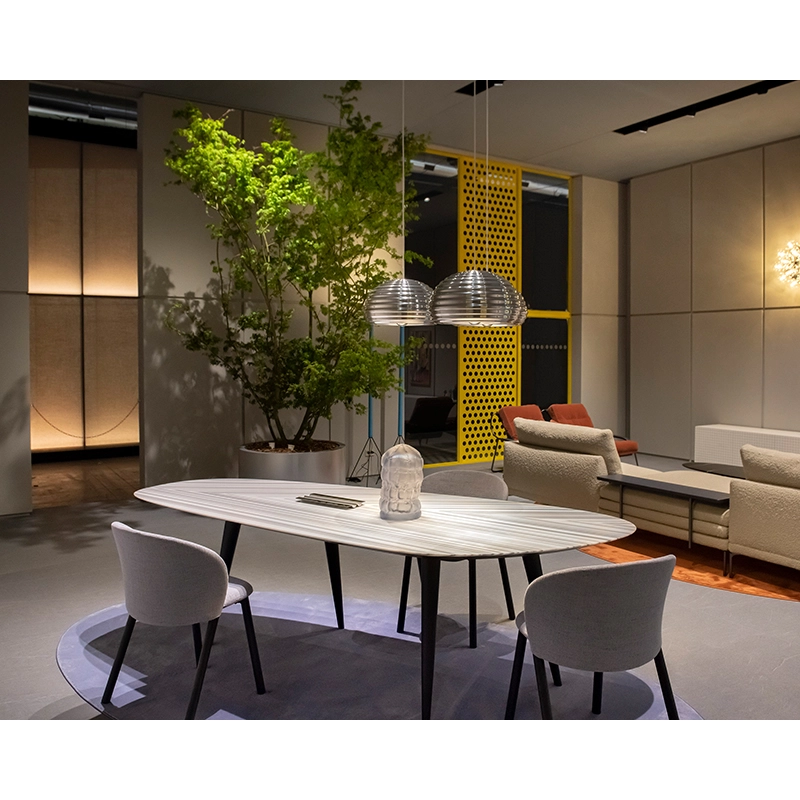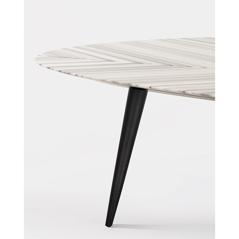 Editée par Zanotta, la table Tweed Marble vient compléter la collection de tables Tweed avec un plateau raffiné en marbre blanc Striato Olimpico. La table de repas Tweed Marble se distingue par ses formes organiques et irrégulières. Les veines grises horizontales du marbre sont soigneusement alignées pour former un motif graphique. Les pieds en acier tubulaire noir mat contrastent élégamment avec le plateau aux teintes claires. La table Tweed MarbleZanotta invite à la convivialité grâce à son design adapté à divers espaces et besoins. Ses dimensions généreuses permettent d'accueillir de nombreux convives. La table Tweed Marble associe l'élégance organique à la sophistication du marbre, tout en offrant diverses options pour des rassemblements formels et informels. Cette table incarne la fusion subtile de l'art et de la fonctionnalité.