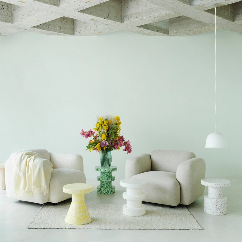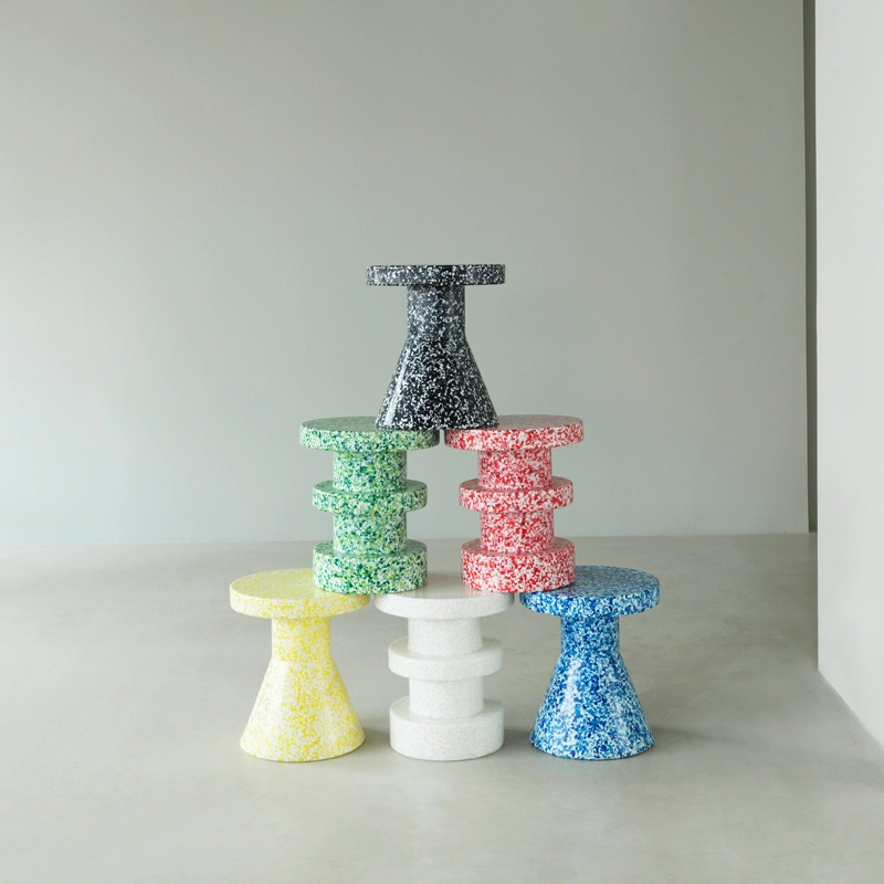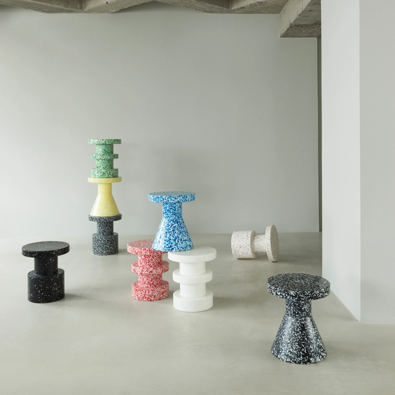 Edité par Normann Copenhagen, Bit est un meuble pluriel et sculptural qui peut avoir de multiples fonctions dans un intérieur. Vous pouvez par exemple utiliser Bit comme piédestal pour une belle décoration florale, comme table d’appoint pour y poser une lampe ou comme tabouret pour un convive supplémentaire. Pour concevoir le multifonctionnel Bit, le designer Simon Legald s’est inspiré de formes immuables comme les monolithes et les piliers. La rigueur de sa forme est brisée par sa surface caractéristique et pixélisée grâce aux petits morceaux de 100% plastique recyclé d’origine industrielle et ménagère. Une méthode particulière où les fragments de plastique sont chauffés jusqu’à leur point de fusion à 120 degrés, et qui permet de recycler et de refusionner la matière un grand nombre de fois sans modifier ses propriétés. Il en résulte une profondeur et une composition singulières rendant chaque table Bit unique. Disponible en plusieurs formes et différents coloris, Bit donne de la personnalité à toute décoration intérieure. Le tabouret Bit résiste aux températures allant de - 10 à 50 °C et trouvera sa place à l’intérieur comme à l’extérieur.