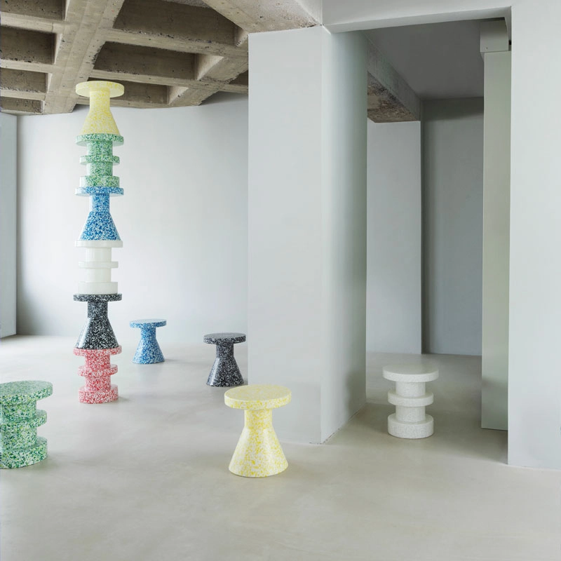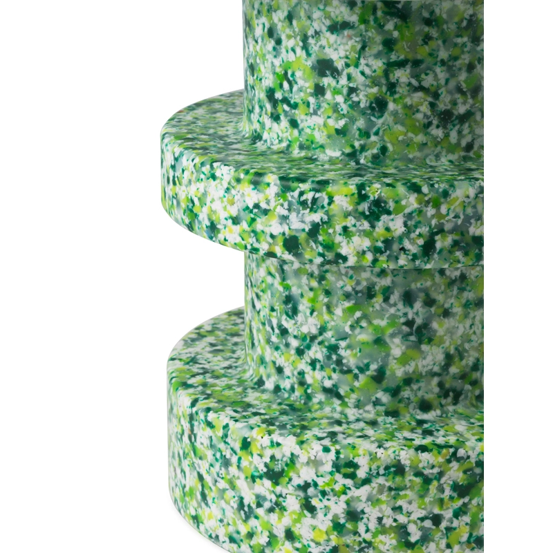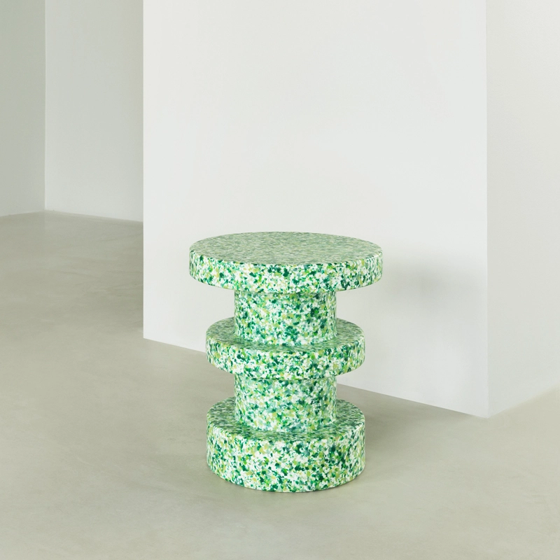 Edité par Normann Copenhagen, Bit est un meuble pluriel et sculptural qui peut avoir de multiples fonctions dans un intérieur. Vous pouvez par exemple utiliser Bit comme piédestal pour une belle décoration florale, comme table d’appoint pour y poser une lampe ou comme tabouret pour un convive supplémentaire. Pour concevoir le multifonctionnel Bit, le designer Simon Legald s’est inspiré de formes immuables comme les monolithes et les piliers. La rigueur de sa forme est brisée par sa surface caractéristique et pixélisée grâce aux petits morceaux de 100% plastique recyclé d’origine industrielle et ménagère. Une méthode particulière où les fragments de plastique sont chauffés jusqu’à leur point de fusion à 120 degrés, et qui permet de recycler et de refusionner la matière un grand nombre de fois sans modifier ses propriétés. Il en résulte une profondeur et une composition singulières rendant chaque table Bit unique. Disponible en plusieurs formes et différents coloris, Bit donne de la personnalité à toute décoration intérieure. Le tabouret Bit résiste aux températures allant de - 10 à 50 °C et trouvera sa place à l’intérieur comme à l’extérieur.