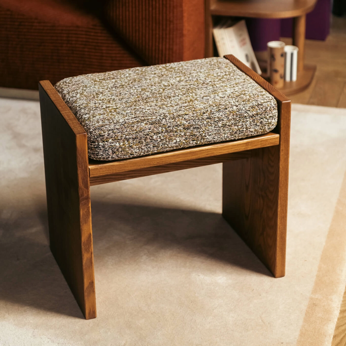 Conçu avec un sens aigu du détail et une recherche d’équilibre entre esthétique et fonctionnalité, le tabouret Chiesa s’impose comme une pièce raffinée alliant chaleur du bois et élégance textile. Son assise, revêtue d’un tweed aux nuances de marron et de vert, évoque la richesse des matières naturelles et la sobriété des intérieurs contemporains. La structure en frêne massif teinté iroko révèle un travail soigné du bois, aux lignes douces et à la finition satinée. Chaque courbe témoigne d’un savoir-faire artisanal attentif, conférant au tabouret une allure à la fois robuste et délicate. Idéal en assise d’appoint dans un salon, autour d’une table haute ou encore dans une chambre élégante, le Chiesa s’adapte à tous les espaces en apportant une touche d’authenticité naturelle et de design intemporel. Pensé pour durer, il allie confort, solidité et raffinement, incarnant la rencontre harmonieuse entre tradition du mobilier et création contemporaine.