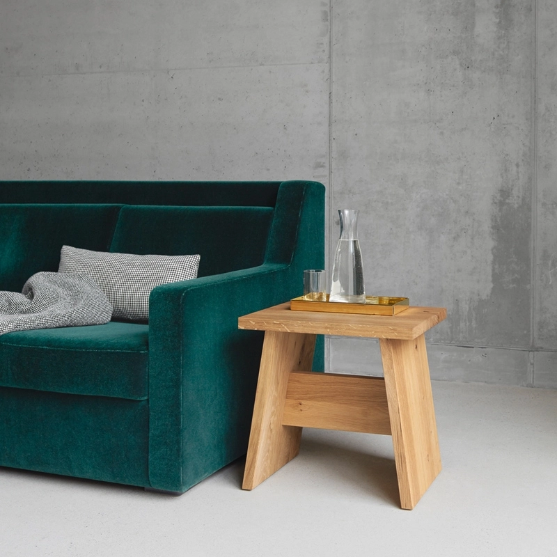 Langley se caractérise par l'utilisation du bois massif dans sa forme la plus pure et un design clair qui va à l'essentiel. Avec ses formes linéaires rappelant fortement les caractéristiques de la table Fayland, Langley est un petit  meuble multifonction, pouvant servir à la fois de tabouret et de table d'appoint. Dessiné par David Chipperfield pour E15, Langley est disponible en chêne ou en noyer et peut être associé à la table Fayland et au banc Fawley.