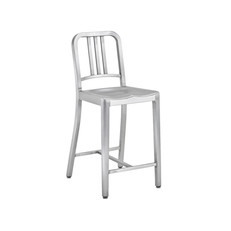 Emeco transforment à la main l'aluminium recyclé en lui donnant forme et en le soudant, puis assurent sa résistance à l'aide de bains salés. Enfin, la chaise est anodisée pour un fini durable. Le résultat est une chaise légère, ultra-résistante, non feu, non corrosive, pour un usage intérieur ou extérieur. Cette pièce s’intégrera dans divers espaces en les sublimant par son caractère emblématique.
