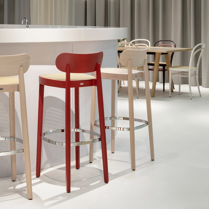 Dessiné par Sebastian Herkner pour Thonet, le tabouret haut 118 reprend les spécificités de forme de la chaise 118. Ce tabouret a été conçu pour répondre aux exigences actuelles des secteurs de l’habitat et de la restauration, où l’on observe une tendance à augmenter la hauteur des tables et des bars. Pour cela, les tabourets 118 sont la solution idéale Ils sont munis d’un petit dossier qui soutient bien le dos et permet de rester assis plus longtemps. Hommage à l’héritage Thonet, le tabouret haut 118 est doté d’une ligne minimaliste et de détails raffinés, apportant une élégance subtile à tous les styles d’espaces.