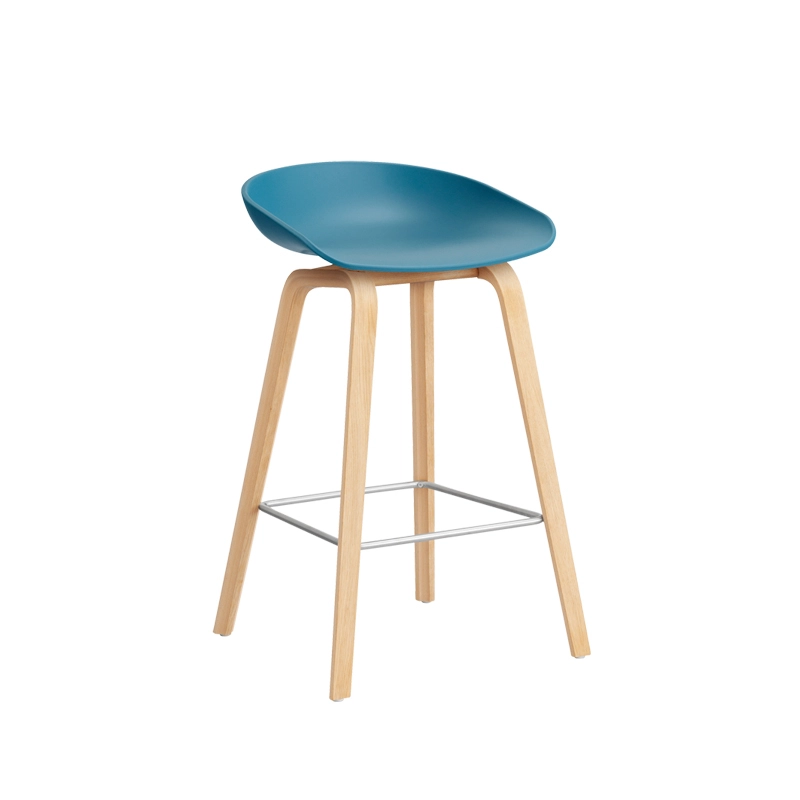 Avec la collection About A Chair le designer Hee Welling a voulu développer une chaise dotée d'une simplicité évidente. Un design sobre et épuré pour une chaise qui fonctionne aussi bien autour d'une table de salle à manger qu'une table de conférence, dans une cantine ou dans un bureau. L'ambition du designer est de combiner la forme, la fonction, le détail et l'esthétique. La maison danoise Hay édite cette collection qui présente une large gamme de couleurs et de structures. En 2011, Hee Welling complète cette collection avec des tabourets et des fauteuils qui suivent la même philosophie. About A Stool est ici proposé avec un piétement bois pour s'intégrer parfaitement à tous les environnements. Tout comme la chaise, il assure un confort optimal et symbolise parfaitement la pureté, la sobriété et le style intemporel du design scandinave.