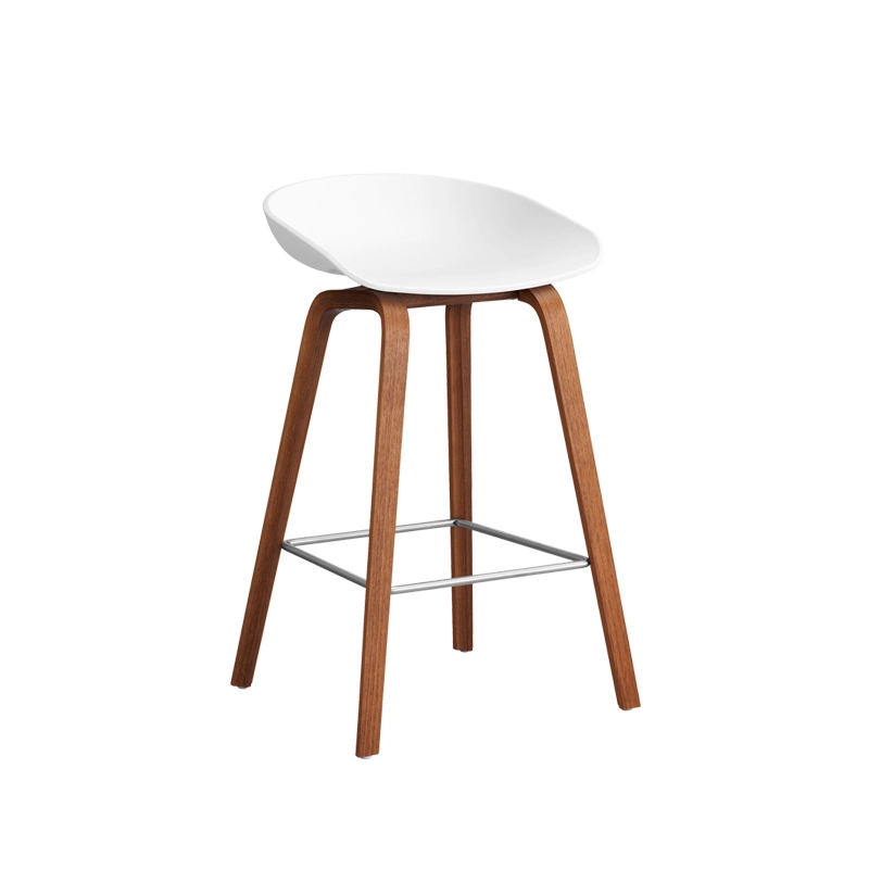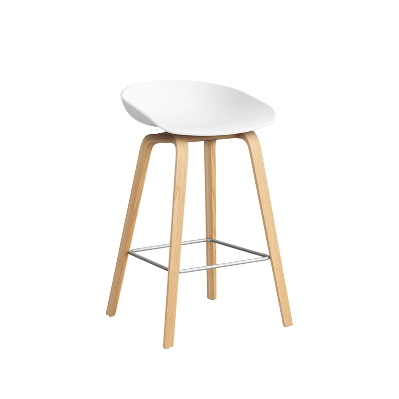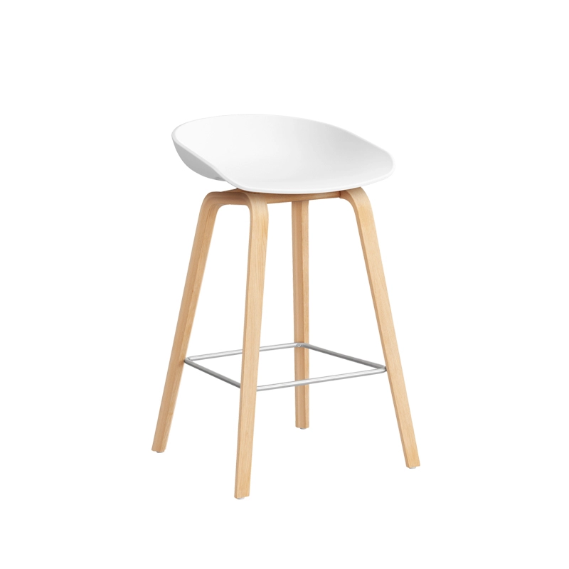Avec la collection About A Chair le designer Hee Welling a voulu développer une chaise dotée d'une simplicité évidente. Un design sobre et épuré pour une chaise qui fonctionne aussi bien autour d'une table de salle à manger qu'une table de conférence, dans une cantine ou dans un bureau. L'ambition du designer est de combiner la forme, la fonction, le détail et l'esthétique. La maison danoise Hay édite cette collection qui présente une large gamme de couleurs et de structures. En 2011, Hee Welling complète cette collection avec des tabourets et des fauteuils qui suivent la même philosophie. About A Stool est ici proposé avec un piétement bois pour s'intégrer parfaitement à tous les environnements. Tout comme la chaise, il assure un confort optimal et symbolise parfaitement la pureté, la sobriété et le style intemporel du design scandinave.