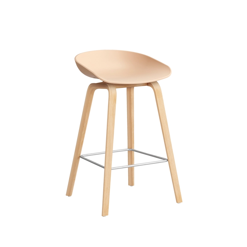 Avec la collection About A Chair le designer Hee Welling a voulu développer une chaise dotée d'une simplicité évidente. Un design sobre et épuré pour une chaise qui fonctionne aussi bien autour d'une table de salle à manger qu'une table de conférence, dans une cantine ou dans un bureau. L'ambition du designer est de combiner la forme, la fonction, le détail et l'esthétique. La maison danoise Hay édite cette collection qui présente une large gamme de couleurs et de structures. En 2011, Hee Welling complète cette collection avec des tabourets et des fauteuils qui suivent la même philosophie. About A Stool est ici proposé avec un piétement bois pour s'intégrer parfaitement à tous les environnements. Tout comme la chaise, il assure un confort optimal et symbolise parfaitement la pureté, la sobriété et le style intemporel du design scandinave.