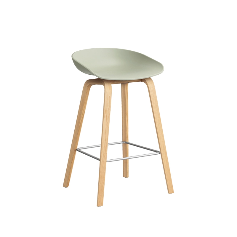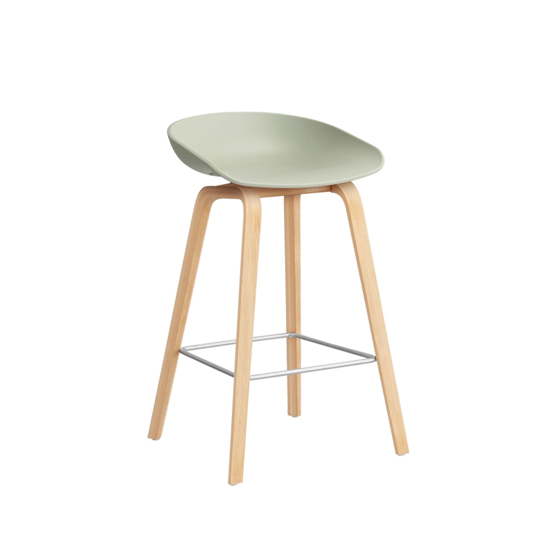 Avec la collection About A Chair le designer Hee Welling a voulu développer une chaise dotée d'une simplicité évidente. Un design sobre et épuré pour une chaise qui fonctionne aussi bien autour d'une table de salle à manger qu'une table de conférence, dans une cantine ou dans un bureau. L'ambition du designer est de combiner la forme, la fonction, le détail et l'esthétique. La maison danoise Hay édite cette collection qui présente une large gamme de couleurs et de structures. En 2011, Hee Welling complète cette collection avec des tabourets et des fauteuils qui suivent la même philosophie. About A Stool est ici proposé avec un piétement bois pour s'intégrer parfaitement à tous les environnements. Tout comme la chaise, il assure un confort optimal et symbolise parfaitement la pureté, la sobriété et le style intemporel du design scandinave.