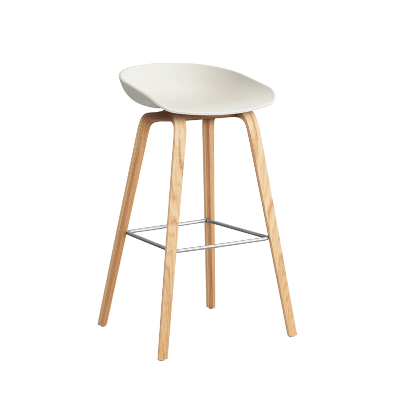 Avec la collection About A Chair le designer Hee Welling a voulu développer une chaise dotée d'une simplicité évidente. Un design sobre et épuré pour une chaise qui fonctionne aussi bien autour d'une table de salle à manger qu'une table de conférence, dans une cantine ou dans un bureau. L'ambition du designer est de combiner la forme, la fonction, le détail et l'esthétique. La maison danoise Hay édite cette collection qui présente une large gamme de couleurs et de structures. En 2011, Hee Welling complète cette collection avec des tabourets et des fauteuils qui suivent la même philosophie. About A Stool est ici proposé avec un piétement bois pour s'intégrer parfaitement à tous les environnements. Tout comme la chaise, il assure un confort optimal et symbolise parfaitement la pureté, la sobriété et le style intemporel du design scandinave.