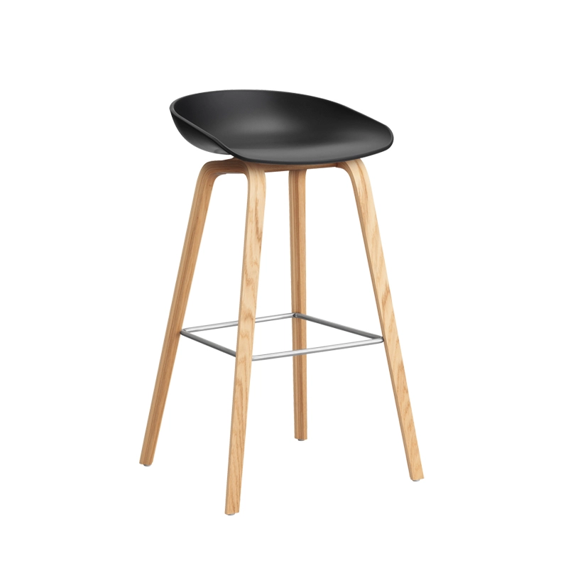 Avec la collection About A Chair le designer Hee Welling a voulu développer une chaise dotée d'une simplicité évidente. Un design sobre et épuré pour une chaise qui fonctionne aussi bien autour d'une table de salle à manger qu'une table de conférence, dans une cantine ou dans un bureau. L'ambition du designer est de combiner la forme, la fonction, le détail et l'esthétique. La maison danoise Hay édite cette collection qui présente une large gamme de couleurs et de structures. En 2011, Hee Welling complète cette collection avec des tabourets et des fauteuils qui suivent la même philosophie. About A Stool est ici proposé avec un piétement bois pour s'intégrer parfaitement à tous les environnements. Tout comme la chaise, il assure un confort optimal et symbolise parfaitement la pureté, la sobriété et le style intemporel du design scandinave.