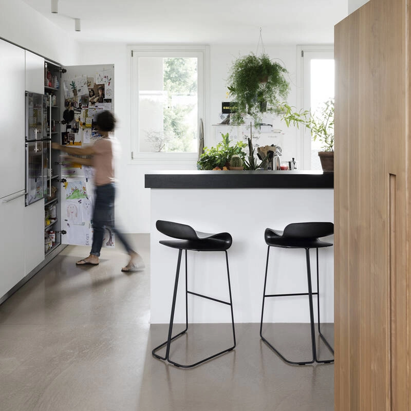 Harry & Camila ont créés pour la marque Kristalia, la collection de tabourets BCN aux lignes sinueuses et confortables. Fabriqués à partir d'une matière plastique particulière, utilisée normalement comme isolant sur les composants électriques, ces tabourets assurent résistance à tous types d'agression : usure, chaleur, solvants... La structure est en tube d'acier finition noire du même coloris que l'assise. La matière est aussi particulièrement flexible ce qui garantit le confort de l'assise. Ce tabouret haut est parfait pour une cuisine aménagée à l'américaine et autour d'une table haute.