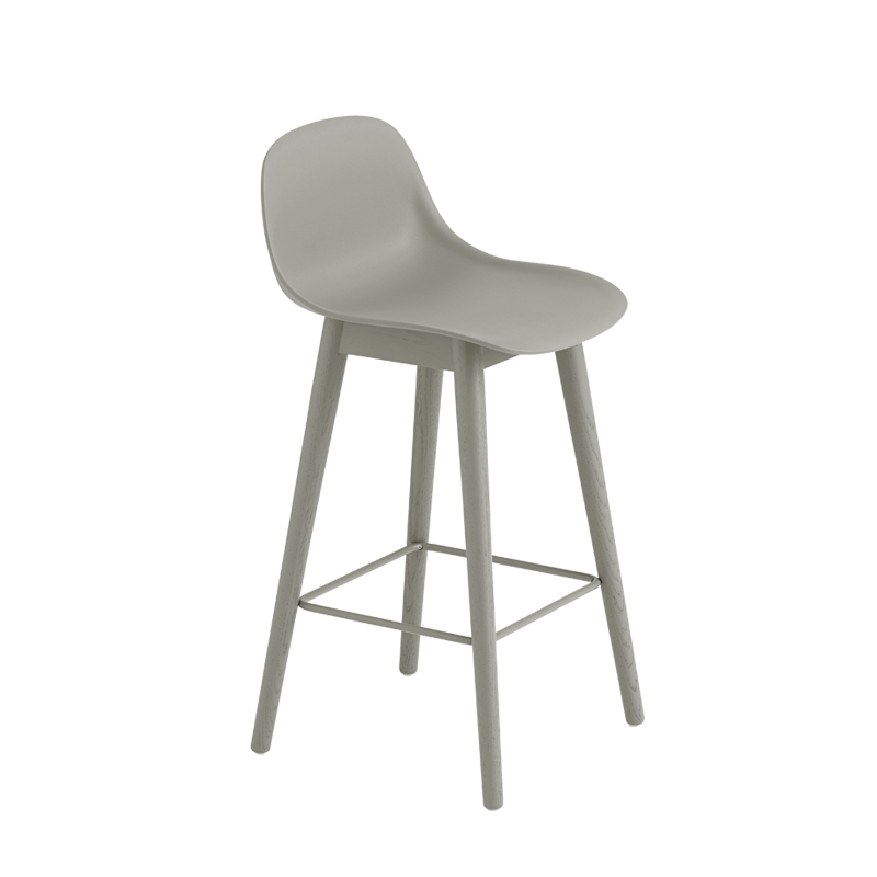 Tabouret haut FIBER BAR STOOL Avec dossier pieds bois H65 Gris MUUTO