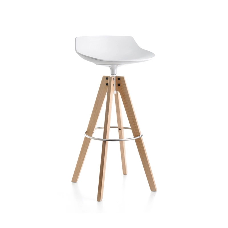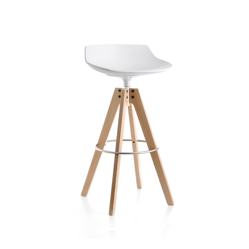 Dessinée par Jean-Marie Massaud pour MDF, la collection Flow comprend désormais une version tabouret. Pour cette série de sièges très confortables, le designer s'est inspiré de classiques du design comme la Plastic Chair de Eames pour développer cette assise en polycarbonate moulé, qui s'associe à différents piétements. La collection Flow s'adapte aussi bien à un usage domestique, dans la cuisine, la salle à manger, que dans des espaces collectifs, comme des bureaux. La coque possède une finition brillante à l'extérieur et gaufrée à l'intérieur. Le tabouret Flow Stool est équipé d'un piètement en chêne et se décline en trois hauteurs. Le siège pivote à 360°.