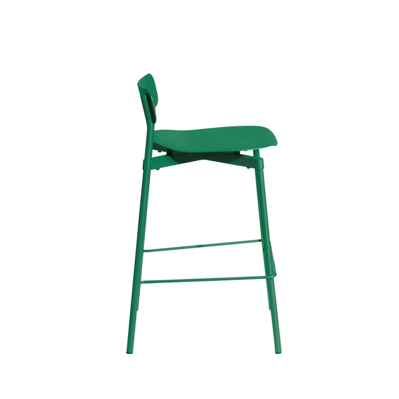 Assemblage de pièces moulées sous pression puis profilées, et de tubes extrudés spécialement dessinés par Tom Chung pour cette collection, le tabouret haut Fromme bénéficie d’une structure légère et solide. Petite Friture pense ses produits dans une démarche durable et respectueuse de l’environnement, toute la collection est donc fabriquée dans une matière recyclable, l’aluminium.