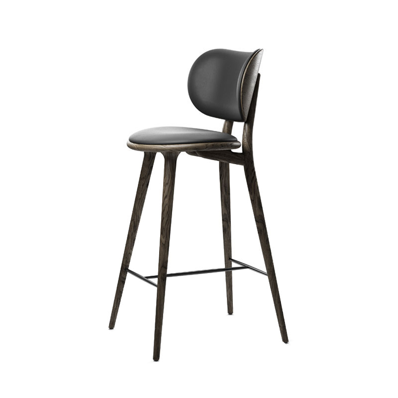 Tabouret haut HIGH STOOL BACKREST Chêne Sirka gris/ cuir noir MATER