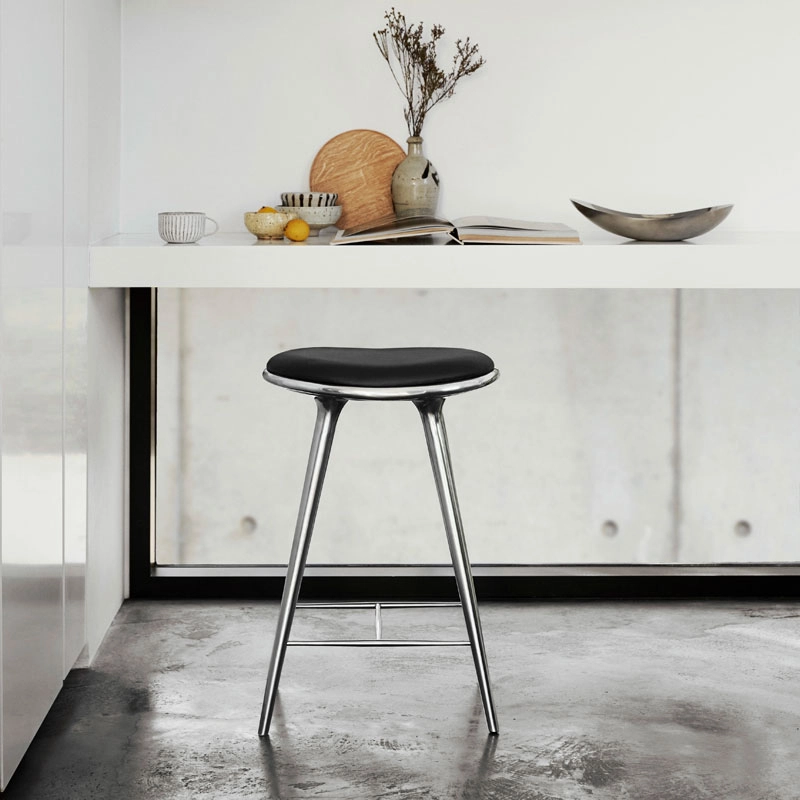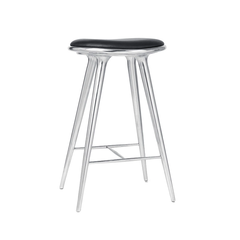 3. HIGH STOOL Aluminium poli/ cuir noir