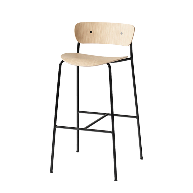 Les chaises de bar et de comptoir Pavilion AV9 et AV7 sont dotées d'une silhouette légère, avec des courbes fluides pour le siège et le dossier en contreplaqué. Idéal pour meubler un grand bar ou un comptoir de cuisine, le tabouret haut Pavilion peut facilement remplir un espace sans que celui paraisse saturé. «Les chaises tubulaires ont vu le jour au début du modernisme, mais elles étaient généralement construites à des angles fixes», note Anderssen & Voll. «Nous voulions explorer une construction plus ouverte, une forme d'expression plus libre.» L'inspiration derrière la série Pavilion est le bâtiment Langelinie Pavilion surplombant la promenade du front de mer de Copenhague. Il a été reconstruit dans les années 50 en hommage au mouvement moderniste.