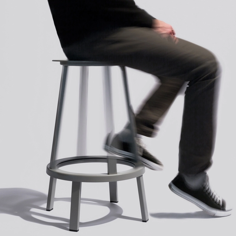 Dessinée par Leon Ransmeier, Revolver est une collection de tabourets hauts pivotants à 360°, disponible en deux hauteurs. Doté d'une silhouette légère, il est aussi très robuste grâce à sa structure en acier. Ce tabouret fonctionnel possède un système de rotation sous le repose-pied qui permet à toute la partie haute de pivoter. Il change donc d'aspect lorsqu'il tourne car la partie haute des pieds se décale par rapport à la base. Ces caractéristiques font de Revolver un tabouret aussi bien adapté à un espace domestique que collectif. Ce tabouret design fait partie de Wrong For Hay, collection lancée en 2013 et née de la collaboration entre l'éditeur Hay et le designer londonien Sebastian Wrong.