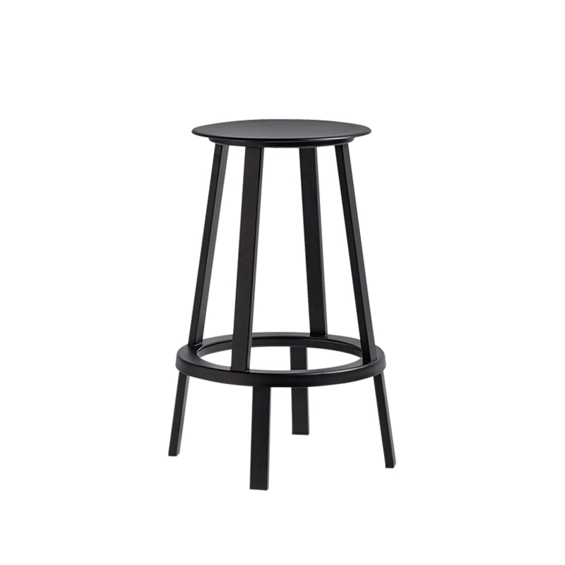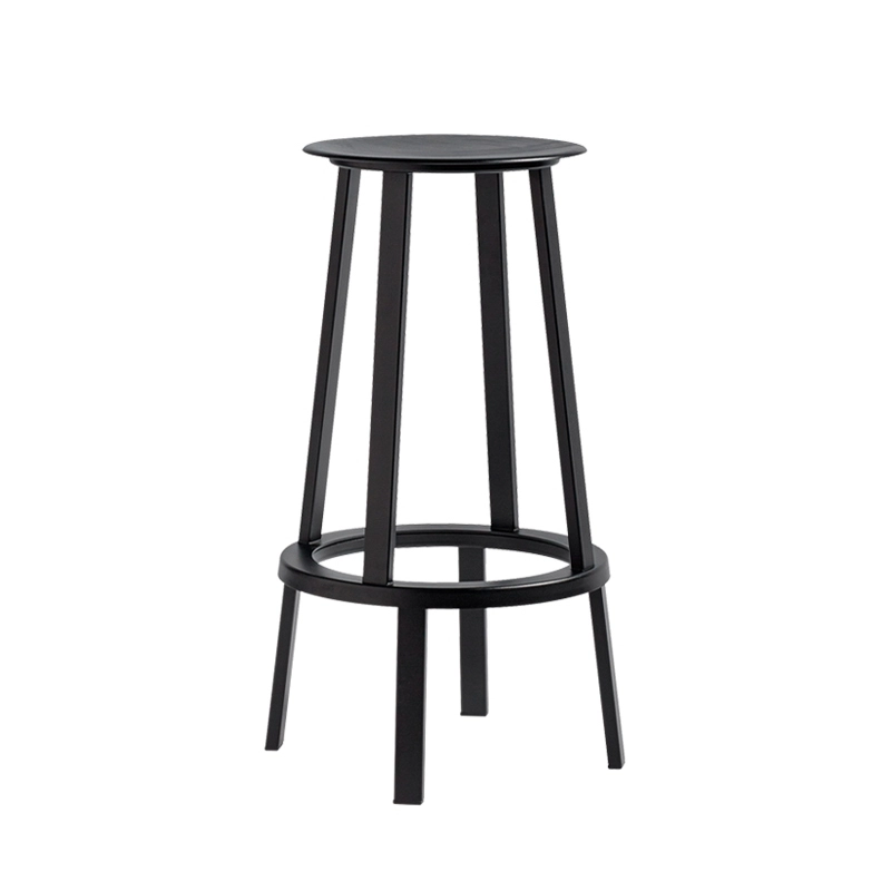 Dessinée par Leon Ransmeier, Revolver est une collection de tabourets hauts pivotants à 360°, disponible en deux hauteurs. Doté d'une silhouette légère, il est aussi très robuste grâce à sa structure en acier. Ce tabouret fonctionnel possède un système de rotation sous le repose-pied qui permet à toute la partie haute de pivoter. Il change donc d'aspect lorsqu'il tourne car la partie haute des pieds se décale par rapport à la base. Ces caractéristiques font de Revolver un tabouret aussi bien adapté à un espace domestique que collectif. Ce tabouret design fait partie de Wrong For Hay, collection lancée en 2013 et née de la collaboration entre l'éditeur Hay et le designer londonien Sebastian Wrong.