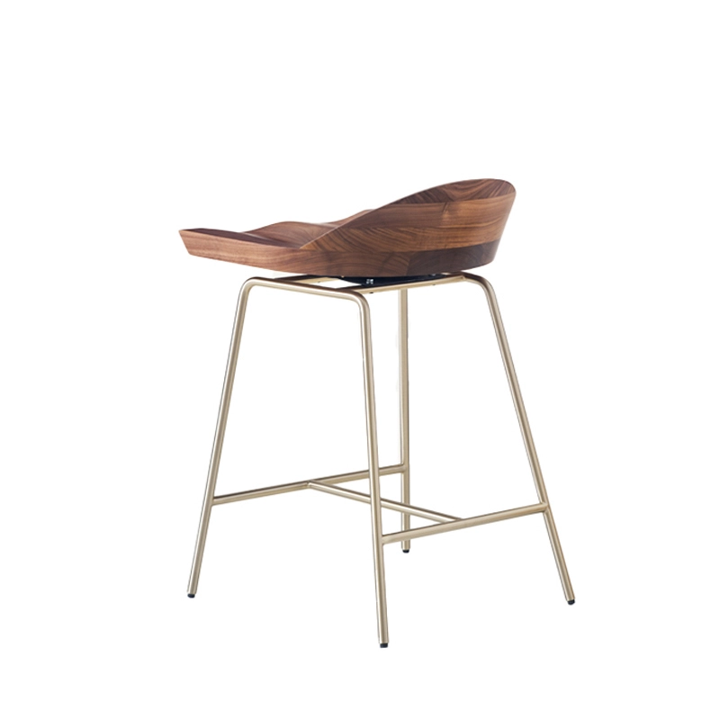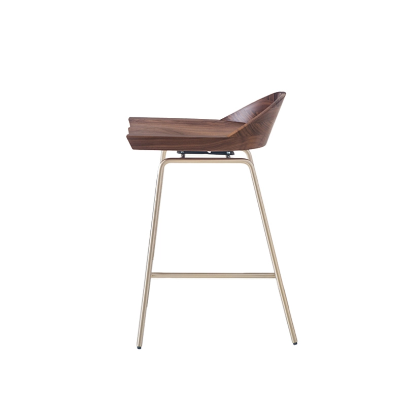 Tabouret haut SPINDLE dossier bas H 61 Noyer/ laiton satiné BASSAMFELLOWS