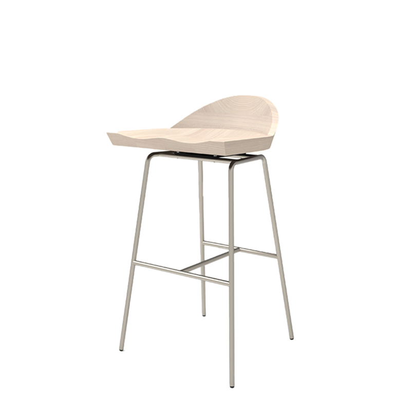Tabouret haut SPINDLE dossier bas H 76 Frêne blanchi/ nickel satiné BASSAMFELLOWS