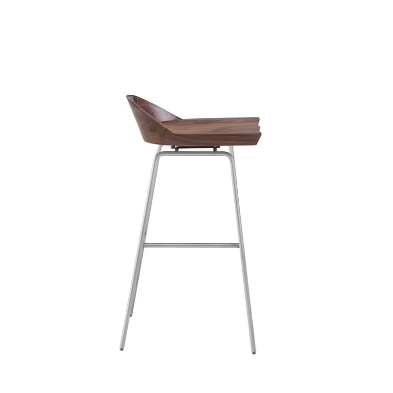 Tabouret haut SPINDLE dossier bas H 76 Noyer/ nickel satiné BASSAMFELLOWS