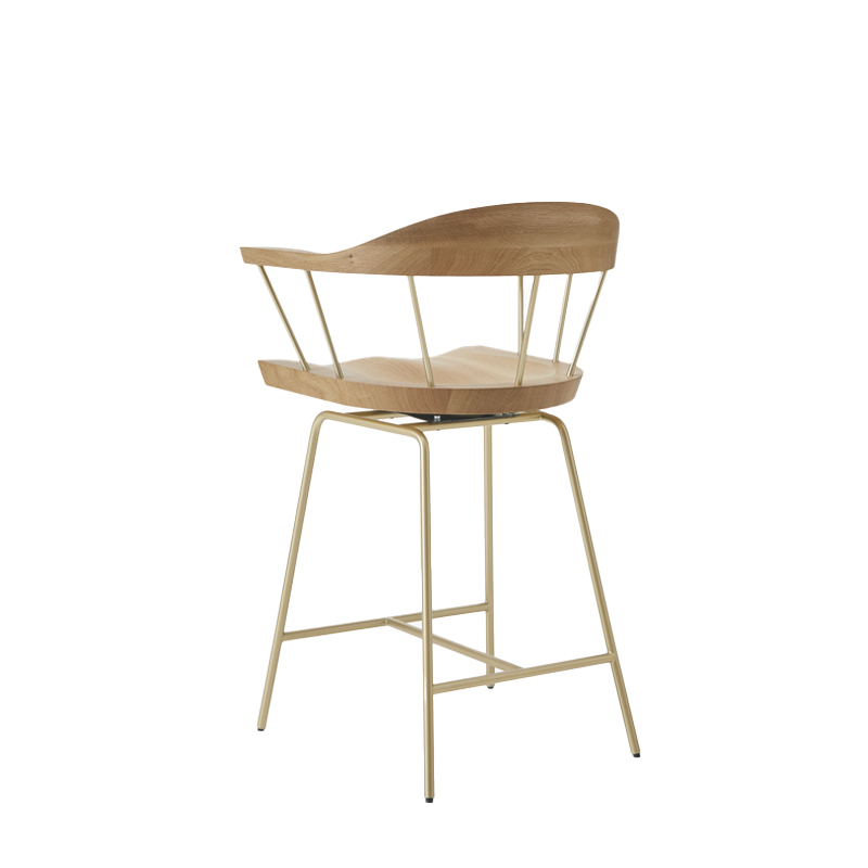 Le tabouret haut Spindle créé par Craig Bassam pour Bassam Fellows s’inspire de la chaise anglaise Windsor créée au XVIIIe siècle. Cette collection de sièges incarne parfaitement le contraste entre l’ancien et le nouveau. Le tabouret haut Spindle possède une silhouette fine avec des pieds et des tiges en métal aussi minces que possible. Les différents éléments ergonomiques sont en bois sculpté, donnant l’impression qu’ils sont en apesanteur, grâce à leurs supports fins. Le tabouret haut Spindle de Bassam Fellows est disponible en version comptoir ou bar et se décline en plusieurs finitions. Chaque tabouret Spindle est conçu avec un système pivotant avec retour pour une facilité d'utilisation et une apparence soignée, ce qui en fait également une solution très pratique pour les environnements d'accueil.