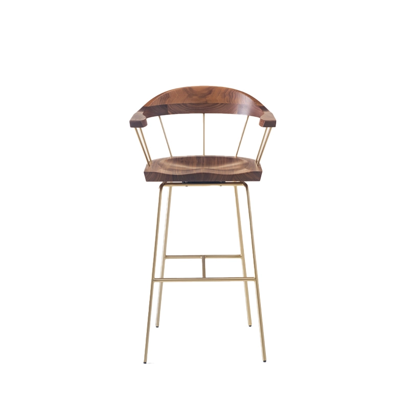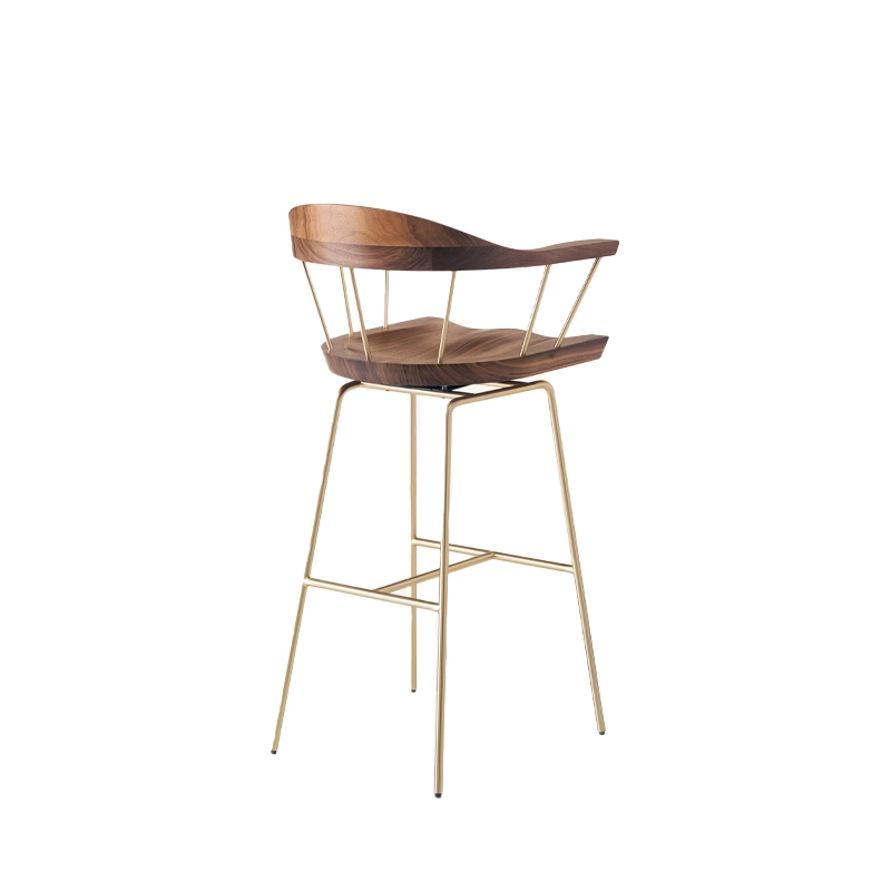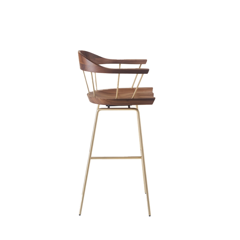 Tabouret haut SPINDLE H 76 Noyer/ laiton satiné BASSAMFELLOWS