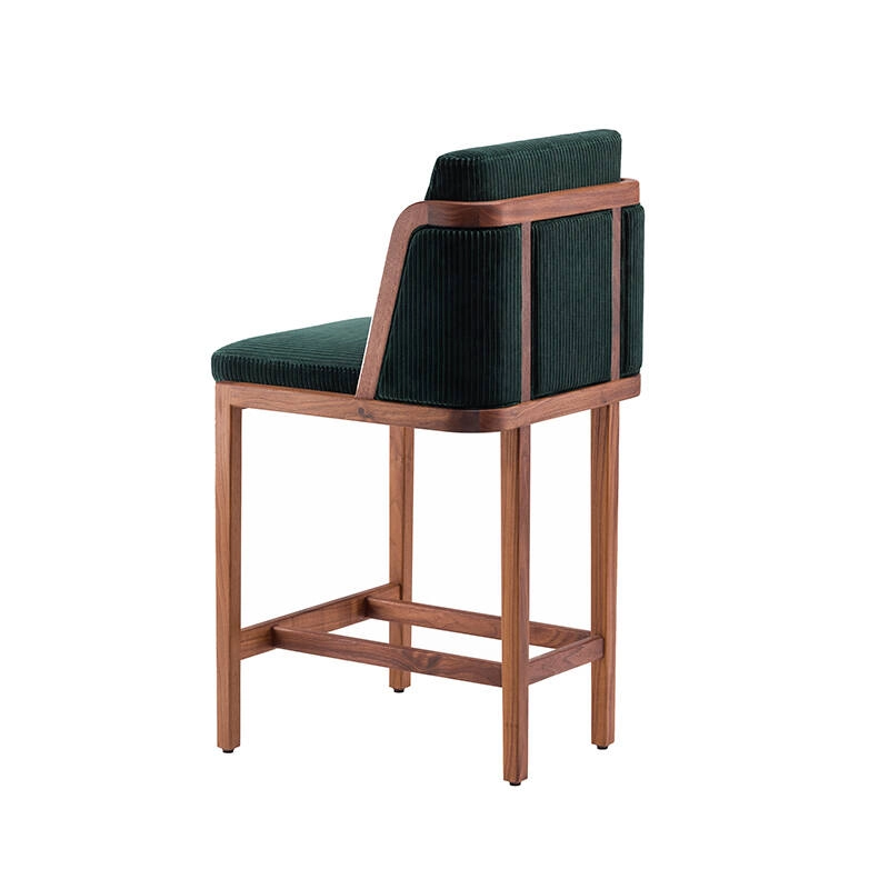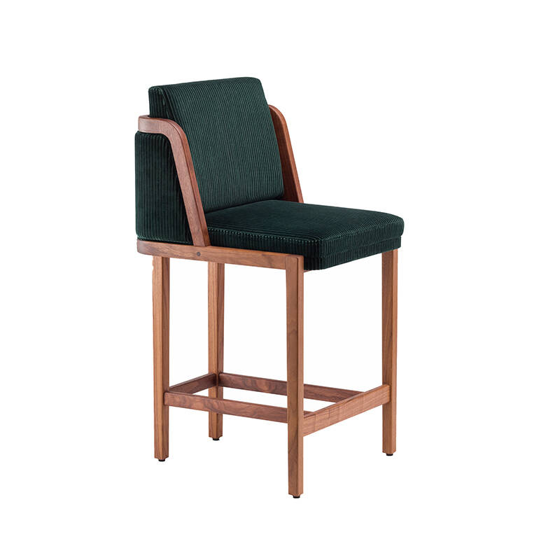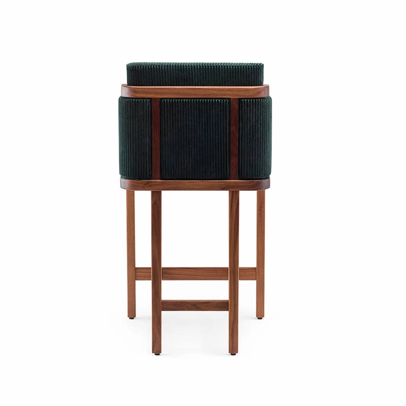 Tabouret haut THRONE dossier tissu Noyer danois huilé / Phlox 983 DE LA ESPADA