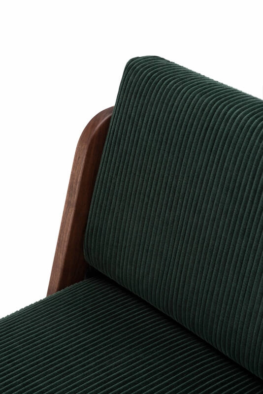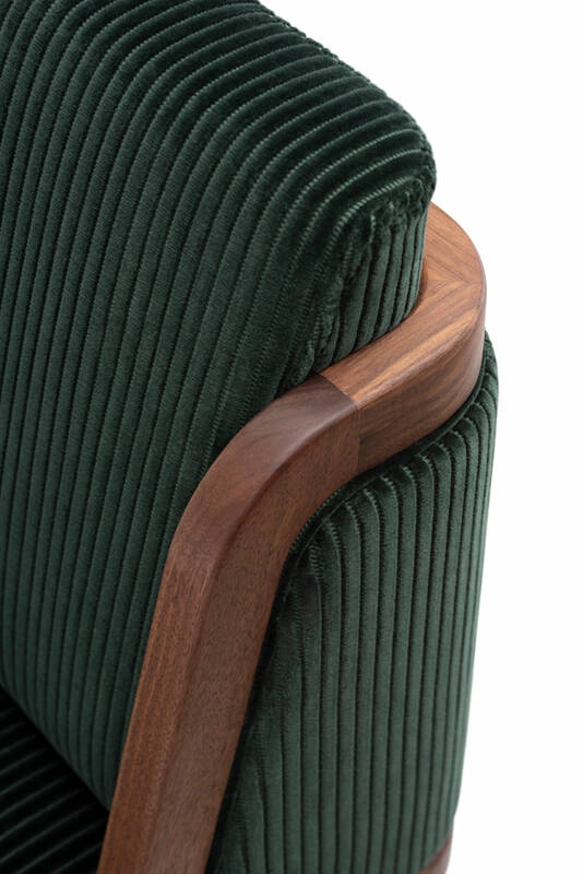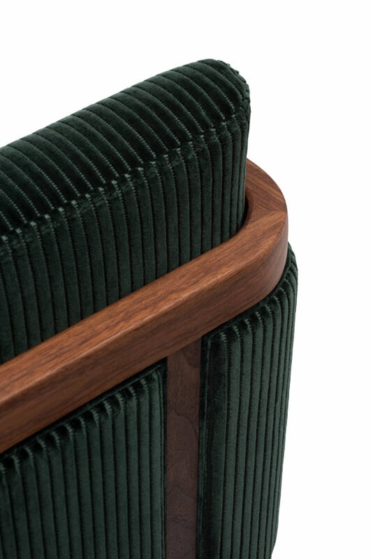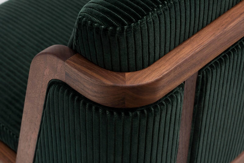 noyer huilé, chêne blanc huilé, revêtement assise et dossier tissu