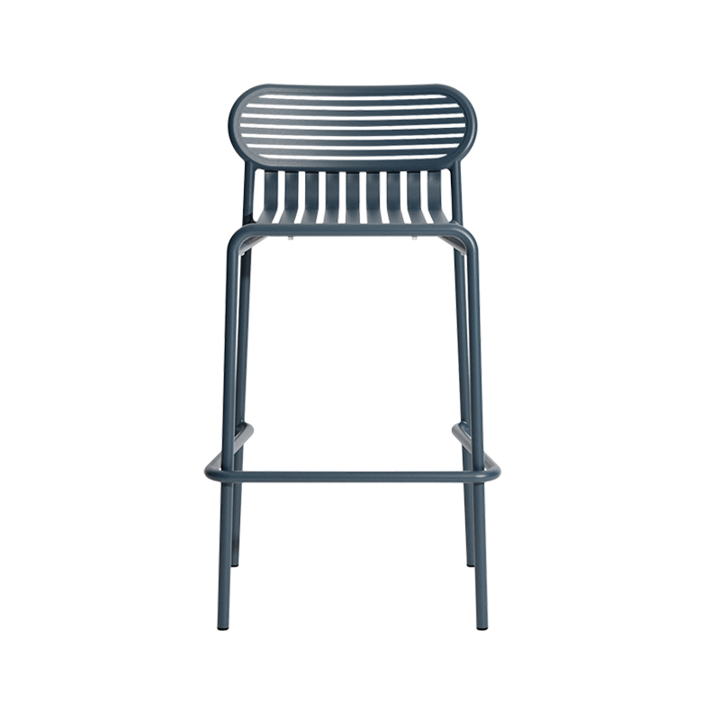 Avec Week-End, la marque française Petite Friture, pose son regard singulier sur l’été et propose avec le studio Brichet-Ziegler une approche graphique et contemporaine du mobilier de jardin. Celle-ci se joue d’un rythme de bandes horizontales et verticales posées avec habileté sur une structure aux lignes fortes. Les bandes de ce tabouret de bar qui caractérisent la collection Week-End éditée par Petite Friture, sont réalisées dans des feuilles d’aluminium découpées au laser en une seule pièce et non en lattes assemblées, permettent la suppression de vis ou de soudures inconfortables. Le travail des lattes horizontales et verticales comme des rayures, souligne les pleins et les vides, affirmant l’identité de la collection. La collection Week-End est une gamme de mobilier outdoor complète. Les couleurs précises sélectionnées pour cette collection marquent seules ou en combinaison les lignes d’horizon d’un balcon, d’une terrasse ou d’un jardin. Ce tabouret haut est disponible en plusieurs couleurs comme le noir, jaune, vert jade … La mise en couleurs de la collection Week-end, de Petite Friture, en peinture poudre époxy anti-UV grainée garantit un maintien impeccable des teintes au cours du temps. Le tabouret de bar design proposé par Petite Friture, a été conçu avec l’obsession de tirer le meilleur parti des matériaux et des techniques de réalisation à la disposition des designers. Réalisée en aluminium, matériau sélectionné pour sa légèreté et sa résistance aux intempéries, la collection Week-End allie confort esthétique et sens pratique. En effet, cette collection est résolument pensée autour d’une utilisation pratique car toutes les assises sont empilables.