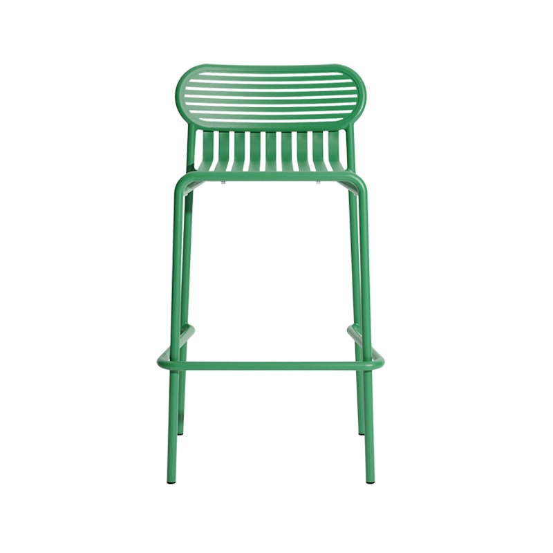Avec Week-End, la marque française Petite Friture, pose son regard singulier sur l’été et propose avec le studio Brichet-Ziegler une approche graphique et contemporaine du mobilier de jardin. Celle-ci se joue d’un rythme de bandes horizontales et verticales posées avec habileté sur une structure aux lignes fortes. Les bandes de ce tabouret de bar qui caractérisent la collection Week-End éditée par Petite Friture, sont réalisées dans des feuilles d’aluminium découpées au laser en une seule pièce et non en lattes assemblées, permettent la suppression de vis ou de soudures inconfortables. Le travail des lattes horizontales et verticales comme des rayures, souligne les pleins et les vides, affirmant l’identité de la collection. La collection Week-End est une gamme de mobilier outdoor complète. Les couleurs précises sélectionnées pour cette collection marquent seules ou en combinaison les lignes d’horizon d’un balcon, d’une terrasse ou d’un jardin. Ce tabouret haut est disponible en plusieurs couleurs comme le noir, jaune, vert jade … La mise en couleurs de la collection Week-end, de Petite Friture, en peinture poudre époxy anti-UV grainée garantit un maintien impeccable des teintes au cours du temps. Le tabouret de bar design proposé par Petite Friture, a été conçu avec l’obsession de tirer le meilleur parti des matériaux et des techniques de réalisation à la disposition des designers. Réalisée en aluminium, matériau sélectionné pour sa légèreté et sa résistance aux intempéries, la collection Week-End allie confort esthétique et sens pratique. En effet, cette collection est résolument pensée autour d’une utilisation pratique car toutes les assises sont empilables.