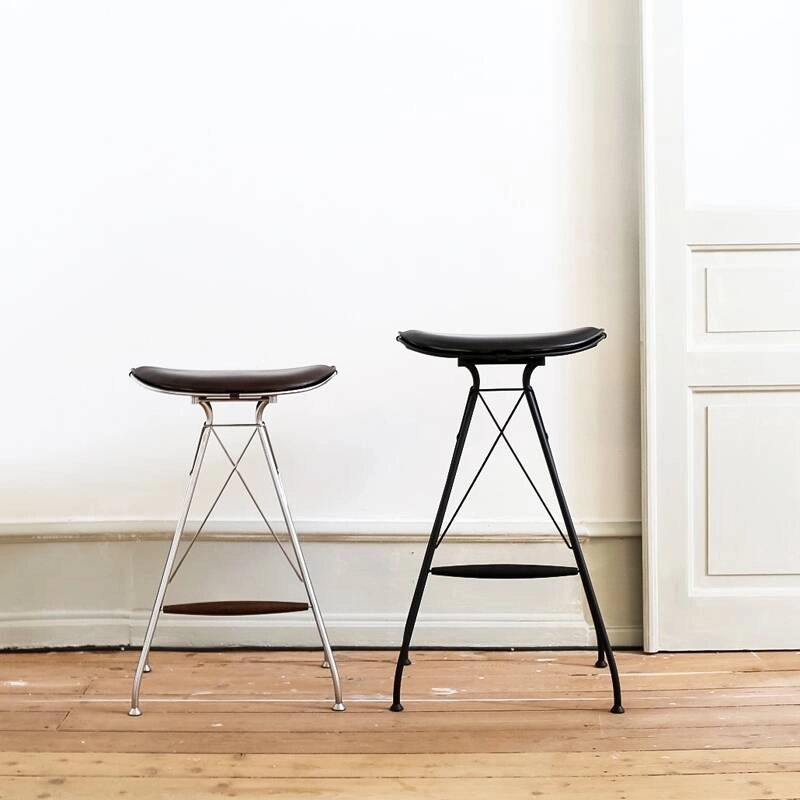 Editée par Overgaard & Dyrman, Wire est une collection de sièges qui tire son inspiration de la fabrication traditionnelle de selles pour chevaux et du travail du métal, et explore les contrastes entre ces deux matériaux de grande qualité. Le tabouret haut Wire est composé d’une structure en acier, disponible en finition chrome satiné ou époxy noir, et d’une assise en cuir aniline, doté d’une texture naturelle qui se patine joliment avec le temps. Disponible en deux hauteurs, il s’intègre parfaitement dans une cuisine, un restaurant ou un bar. La collection Wire est fabriquée au Danemark par des artisans qualifiés et dévoués, qui maitrisent un savoir-faire remarquable dans toutes les étapes de production.