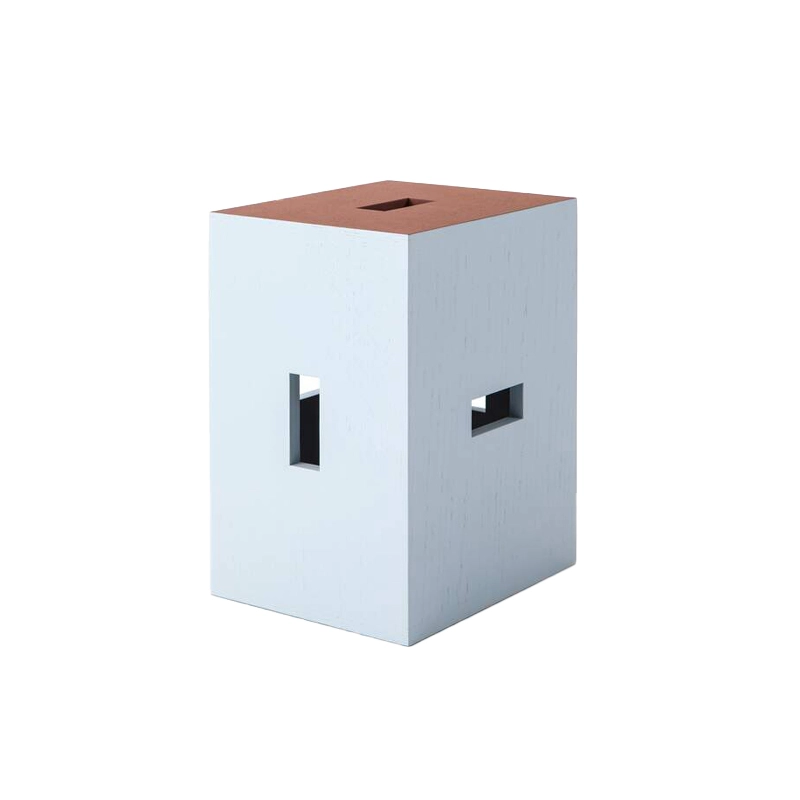 Le tabouret LC14 Nantes Rezé est un siège simple conçu pour les chambres d'enfants de l'Unité d'habitation de Nantes Rezé. Fabriqué en bois massif de chêne laqué marron et bleu clair, le tabouret LC14 Nantes Rezé a été conçu par Le Corbusier et est aujourd'hui édité par la maison italienne Cassina. Cette pièce de mobilier a été pensée selon la poétique de l'objet trouvé chère à Le Corbusier dans la dernière partie de sa vie, et présente désormais de nouveaux détails par rapport aux variantes déjà incluses dans la collection LC14. Il se distingue par des orifices rectangulaires positionnés au centre de chacune de ses faces, ce qui permet de le déplacer avec facilité et s'adapte ainsi à vos besoin. Il peut être placé aussi bien en hauteur qu'en largeur. L'assemblage spécifique des faces en bois confère ainsi une allure unique au tabouret LC14 Nantes Rezé
