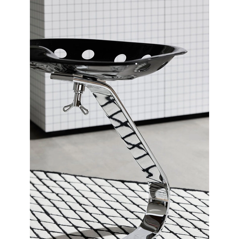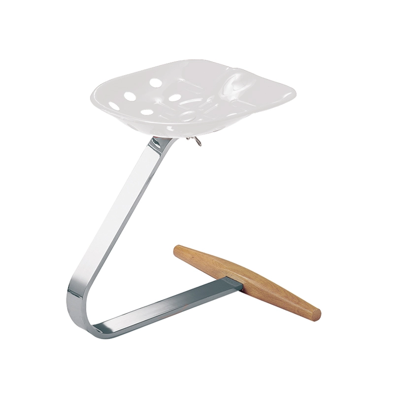Mezzadro, créé en 1957 par Achille et Pier Giacomo Castiglioni et édité chez Zanotta est une véritable icône du design. Par sa forme, ce tabouret très souple semble défier les lois de la pesanteur. Le pied du tabouret est en acier plat chromé avec une base en hêtre étuvé de couleur naturelle. L'assise est un siège de tracteur verni rouge. Aujourd'hui, le tabouret Mezzadro fait partie de nombreuses collections de musées à travers le monde.