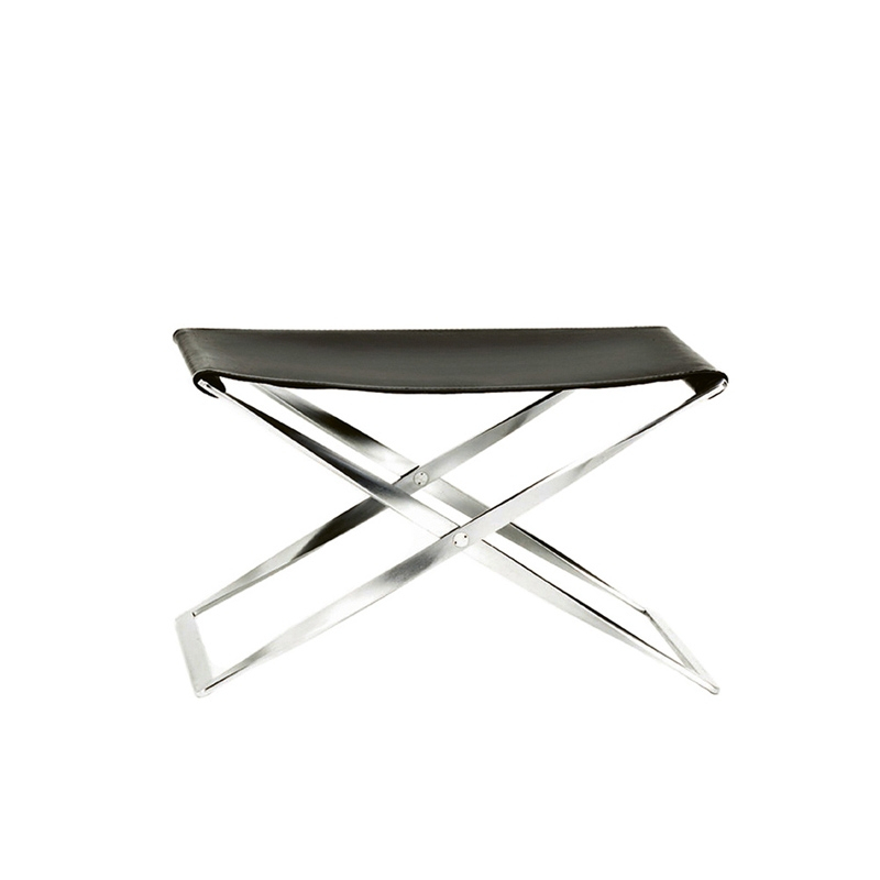 Le tabouret pliant PK91, dessiné par Poul Kjærholm en 1961, s'inspire des tabourets pliants de l'Egypte ancienne. La démarche du designer consiste à redéfinir et simplifier du mobilier historique. C'est ce qu'il fait avec PK91, avec pour résultat un tabouret minimaliste et élégant édité par Fritz Hansen. Il fait partie de la collection permanente du Röhsska Museum en Suède. La base en acier inoxydable satiné est asociée à une assise en cuir noir ou en toile.