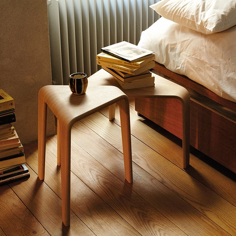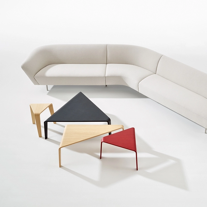 Dessinée par le trio Lievore Altherr Molina pour Arper,  Ply est une collection de tables basses et de tabourets qui déclinent la forme triangulaire dans différentes versions et met en valeur de façon unique les lignes du bois. Chaque pièce est conçue d'un seul tenant, comme un dessin dans l'espace, graphique et sculptural. Les différentes versions peuvent être associées en composition pour créer une esthétique unique dans un salon ou un espace collectif.