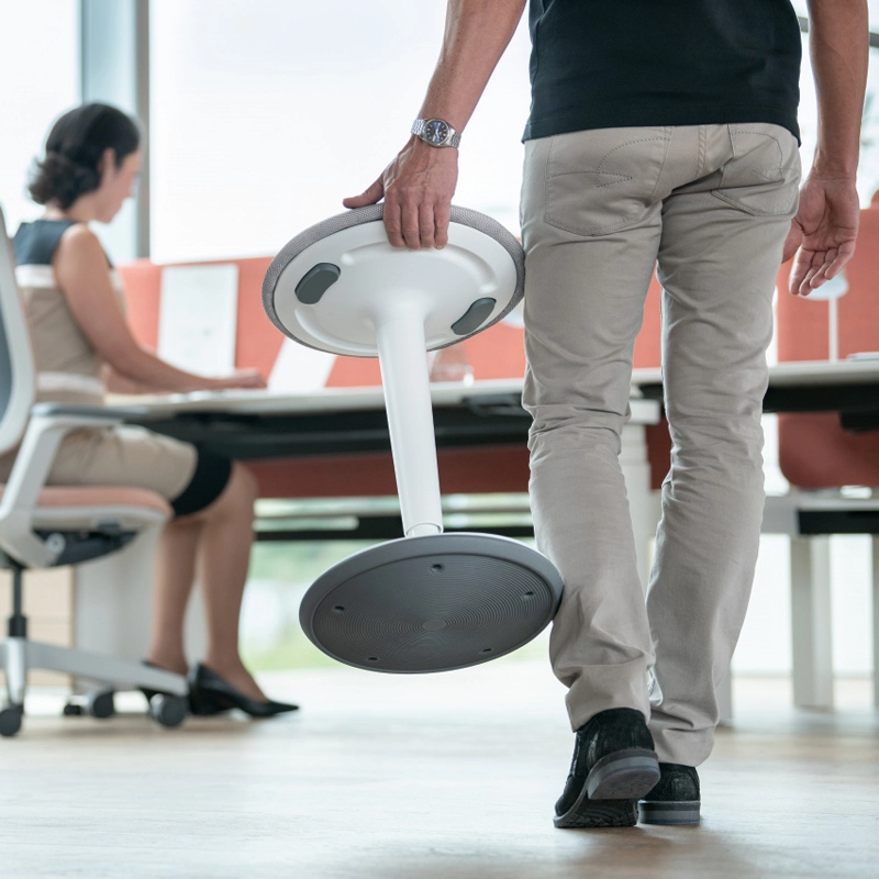 Avec Se:fit, Sedus propose un siège polyvalent, conçu pour inciter au mouvement et offrir une assise ou un appui des plus dynamiques. Objet hybride entre le tabouret et l’appuie-fesses, l’assise active Se:fit devient un jeu d’enfant. Qu’on l’utilise au comptoir, auprès d’un bureau ou en tout endroit où l’agilité est requise : le tabouret Se:fit reste toujours présent et parfaitement adaptable. En effet, Se:fit se règle facilement en hauteur (530 – 800 mm, en continu) et se transporte aisément d’une seule main, grâce à une rainure sous l'assise.