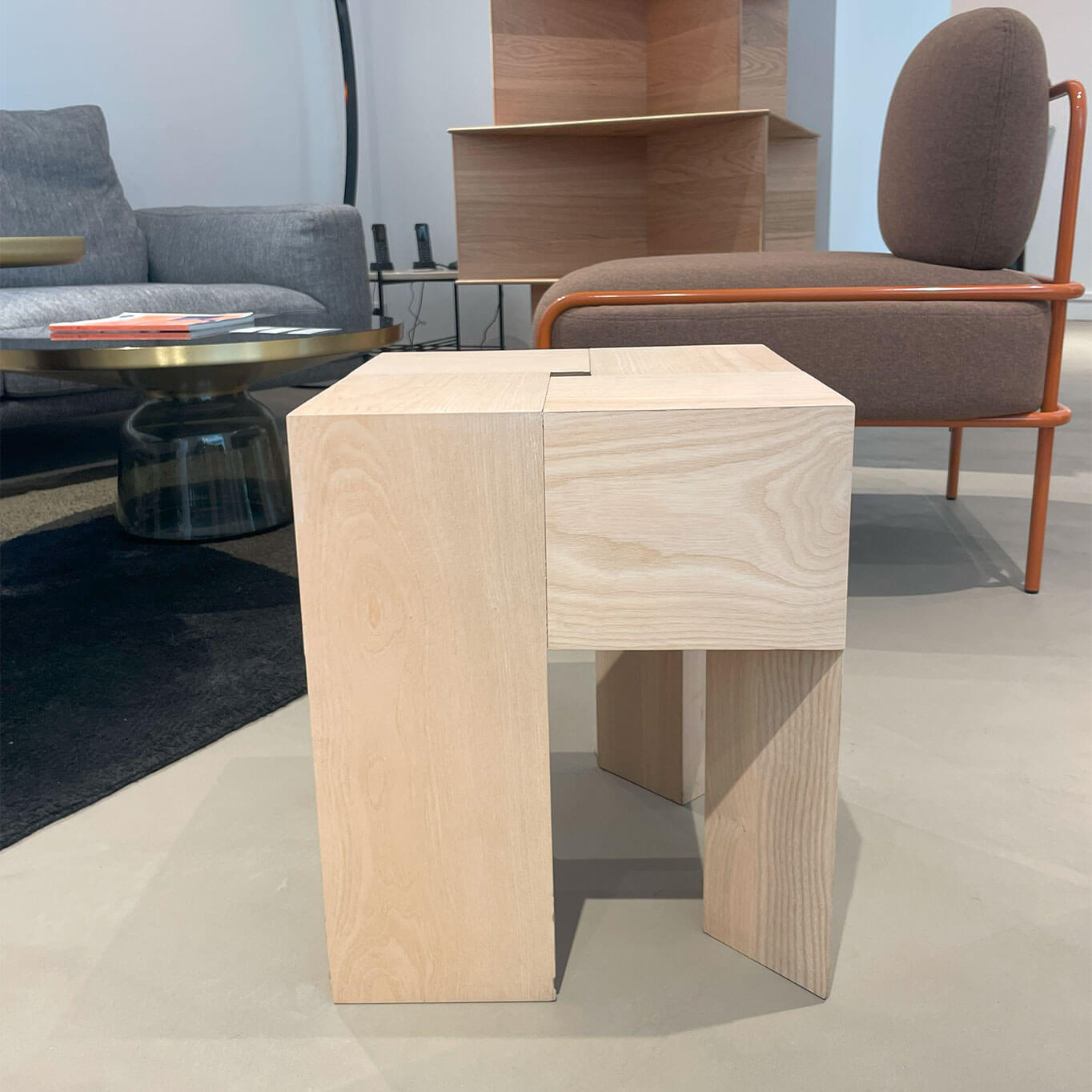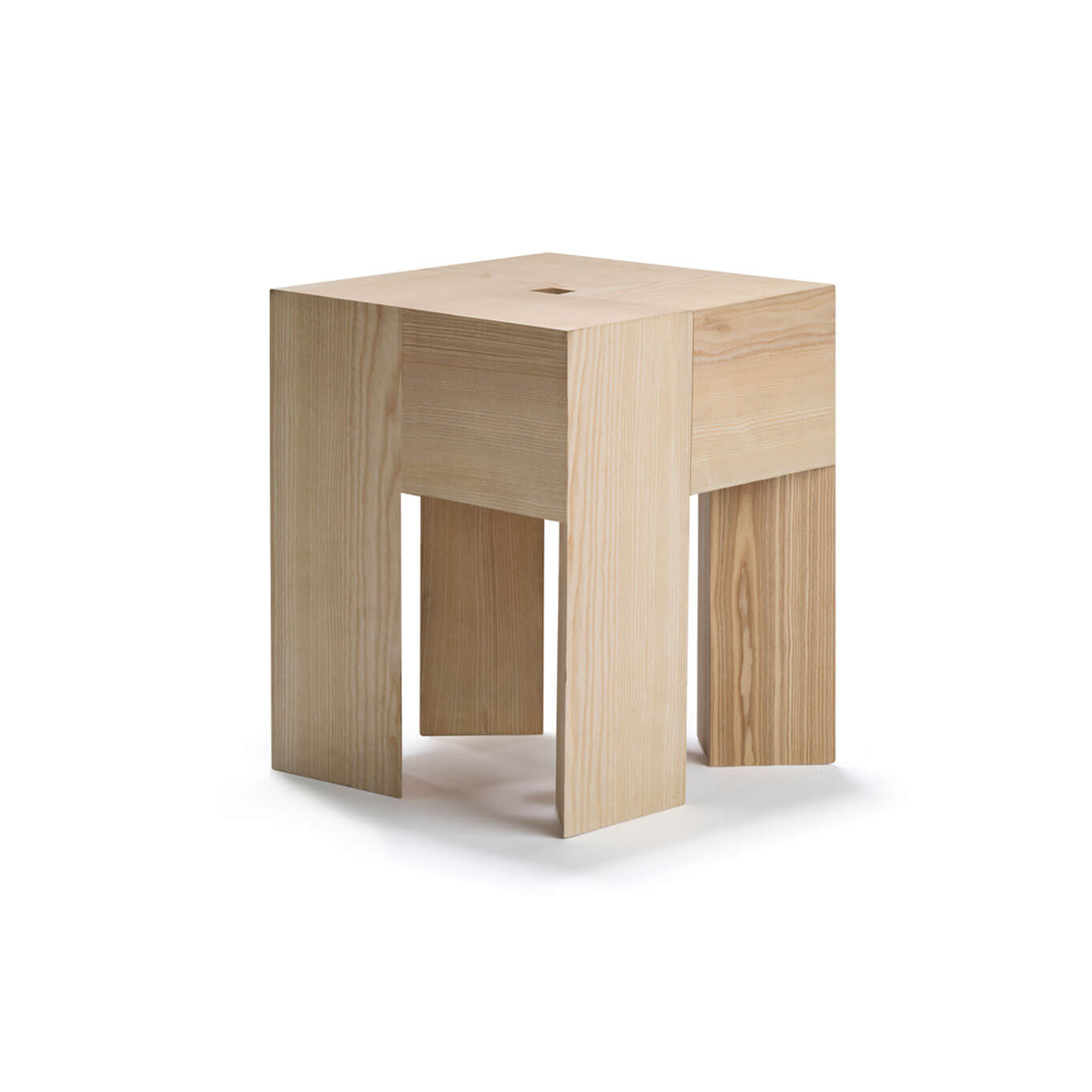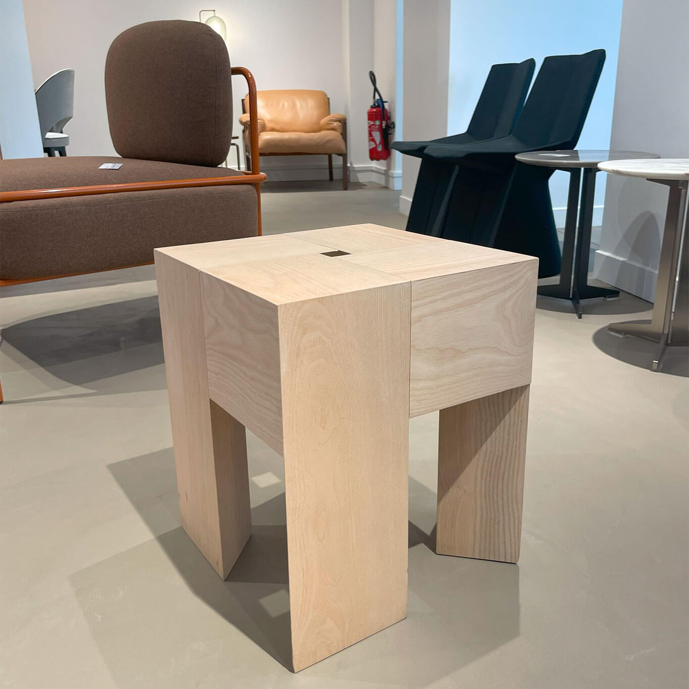 Le designer néerlandais Aldo Bakker est reconnu pour son approche intransigeante du design. Le TriAngle, édité par Karakter, en est un parfait exemple. Composé de 12 éléments triangulaires minutieusement découpés, il s’assemble tel un puzzle d’une précision remarquable. Le résultat ? Un tabouret carré ou une table d’appoint au look distinctif, à la fois sculptural et fonctionnel. Les arêtes vives et les découpes géométriques de ce tabouret d'occasion deviendront plus douces avec le temps, se patinant naturellement. Cette usure progressive fait partie intégrante de la philosophie du design : la matière vit, évolue et raconte une histoire. Cette pièce, bien qu’acquise en occasion, conserve toute sa force expressive. Le travail d’Aldo Bakker se distingue par une rare harmonie et une volonté constante de susciter une réaction. À travers ses créations, il cherche à nous interpeller, à interrompre brièvement nos routines quotidiennes pour nous faire réfléchir à une forme inattendue, à une fonction subtile… et, peut-être, à vivre nos gestes les plus simples avec plus de conscience.