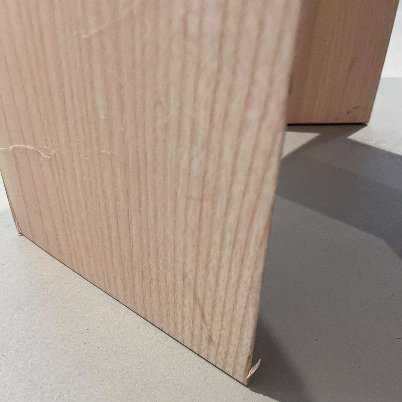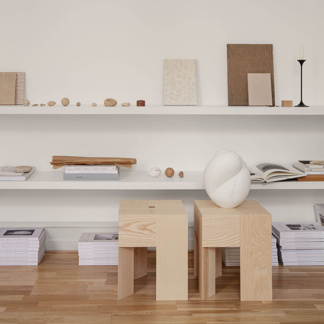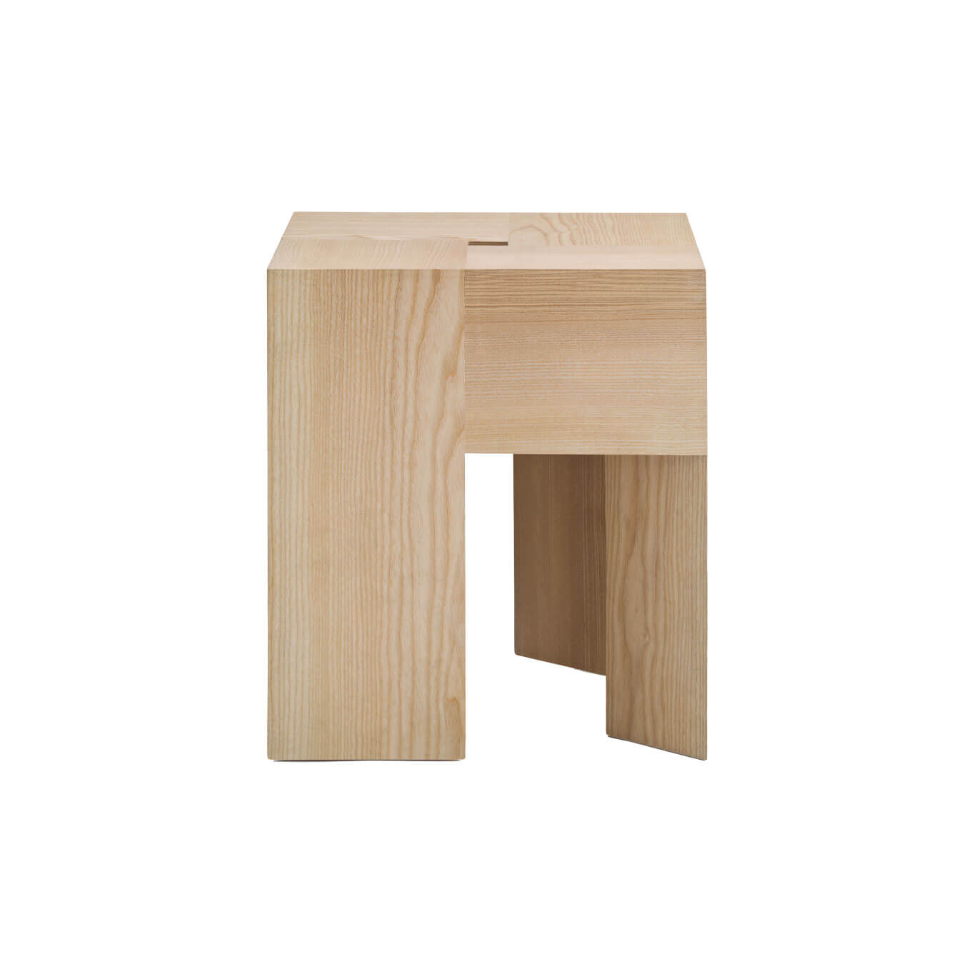 Le designer néerlandais Aldo Bakker est reconnu pour son approche intransigeante du design. Le TriAngle, édité par Karakter, en est un parfait exemple. Composé de 12 éléments triangulaires minutieusement découpés, il s’assemble tel un puzzle d’une précision remarquable. Le résultat ? Un tabouret carré ou une table d’appoint au look distinctif, à la fois sculptural et fonctionnel. Les arêtes vives et les découpes géométriques de ce tabouret d'occasion deviendront plus douces avec le temps, se patinant naturellement. Cette usure progressive fait partie intégrante de la philosophie du design : la matière vit, évolue et raconte une histoire. Cette pièce, bien qu’acquise en occasion, conserve toute sa force expressive. Le travail d’Aldo Bakker se distingue par une rare harmonie et une volonté constante de susciter une réaction. À travers ses créations, il cherche à nous interpeller, à interrompre brièvement nos routines quotidiennes pour nous faire réfléchir à une forme inattendue, à une fonction subtile… et, peut-être, à vivre nos gestes les plus simples avec plus de conscience.