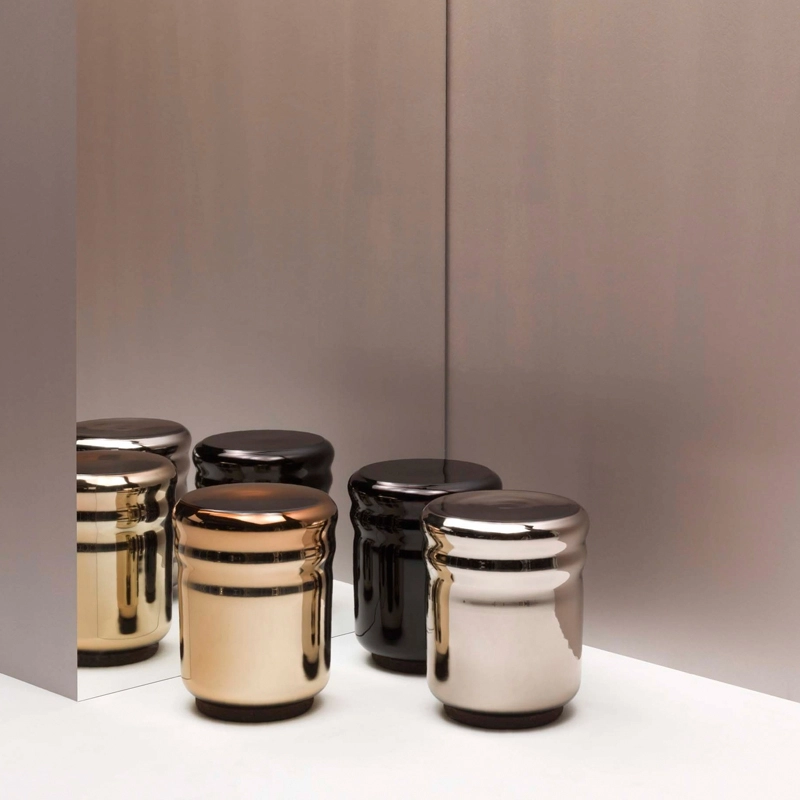 Wave est une série de tabourets réalisée en verre argenté avec une base en liège. Sa forme sculpturale s'inspire d'une onde qui se propage dans l'eau. Dessinés par Dan Yeffet et Lucie Koldova pour Haymann, ces tabourets Wave sont des pièces au design unique et original qui amènent une touche d'élégance dans un intérieur. Wave peut être utilisé également en table d'appoint dans le salon ou en table de chevet dans la chambre.