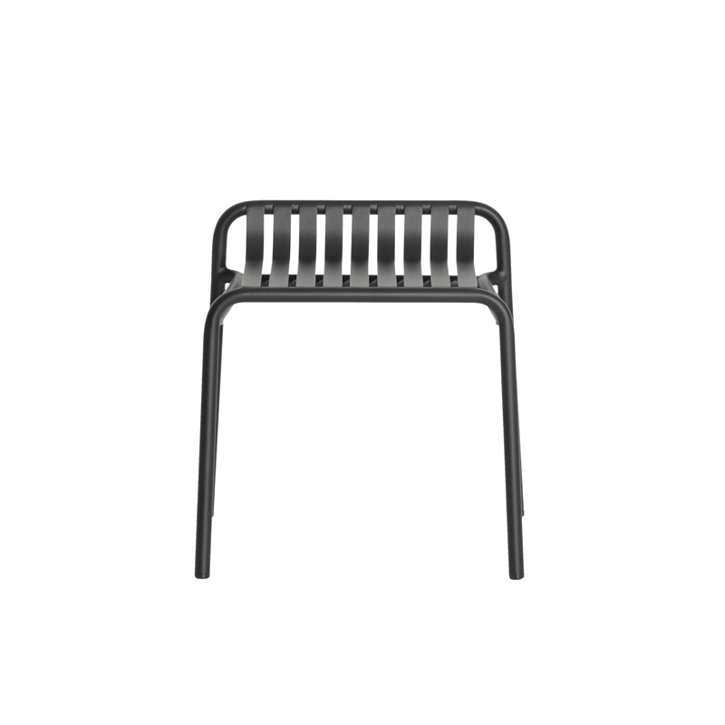 Avec Week-End, la marque française Petite Friture, pose son regard singulier sur l’été et propose avec le studio Brichet-Ziegler une approche graphique et contemporaine du mobilier de jardin. Celle-ci se joue d’un rythme de bandes horizontales et verticales posées avec habileté sur une structure aux lignes fortes. Les bandes de ce tabouret qui caractérisent la collection Week-End éditée par Petite Friture, sont réalisées dans des feuilles d’aluminium découpées au laser en une seule pièce et non en lattes assemblées, permettent la suppression de vis ou de soudures inconfortables. Le travail des lattes comme des rayures, souligne les pleins et les vides, affirmant l’identité de la collection. La collection Week-End est une gamme de mobilier outdoor complète. Les couleurs précises sélectionnées pour cette collection marquent seules ou en combinaison les lignes d’horizon d’un balcon, d’une terrasse ou d’un jardin. Ce tabouret est disponible en plusieurs couleurs comme le noir, jaune, vert jade … La mise en couleurs de la collection Week-end, de Petite Friture, en peinture poudre époxy anti-UV grainée garantit un maintien impeccable des teintes au cours du temps. Le tabouret design proposé par Petite Friture, a été conçu avec l’obsession de tirer le meilleur parti des matériaux et des techniques de réalisation à la disposition des designers. Réalisée en aluminium, matériau sélectionné pour sa légèreté et sa résistance aux intempéries, la collection Week-End allie confort esthétique et sens pratique. En effet, cette collection est résolument pensée autour d’une utilisation pratique car toutes les assises sont empilables.