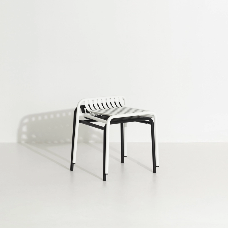 Avec Week-End, la marque française Petite Friture, pose son regard singulier sur l’été et propose avec le studio Brichet-Ziegler une approche graphique et contemporaine du mobilier de jardin. Celle-ci se joue d’un rythme de bandes horizontales et verticales posées avec habileté sur une structure aux lignes fortes. Les bandes de ce tabouret qui caractérisent la collection Week-End éditée par Petite Friture, sont réalisées dans des feuilles d’aluminium découpées au laser en une seule pièce et non en lattes assemblées, permettent la suppression de vis ou de soudures inconfortables. Le travail des lattes comme des rayures, souligne les pleins et les vides, affirmant l’identité de la collection. La collection Week-End est une gamme de mobilier outdoor complète. Les couleurs précises sélectionnées pour cette collection marquent seules ou en combinaison les lignes d’horizon d’un balcon, d’une terrasse ou d’un jardin. Ce tabouret est disponible en plusieurs couleurs comme le noir, jaune, vert jade … La mise en couleurs de la collection Week-end, de Petite Friture, en peinture poudre époxy anti-UV grainée garantit un maintien impeccable des teintes au cours du temps. Le tabouret design proposé par Petite Friture, a été conçu avec l’obsession de tirer le meilleur parti des matériaux et des techniques de réalisation à la disposition des designers. Réalisée en aluminium, matériau sélectionné pour sa légèreté et sa résistance aux intempéries, la collection Week-End allie confort esthétique et sens pratique. En effet, cette collection est résolument pensée autour d’une utilisation pratique car toutes les assises sont empilables.