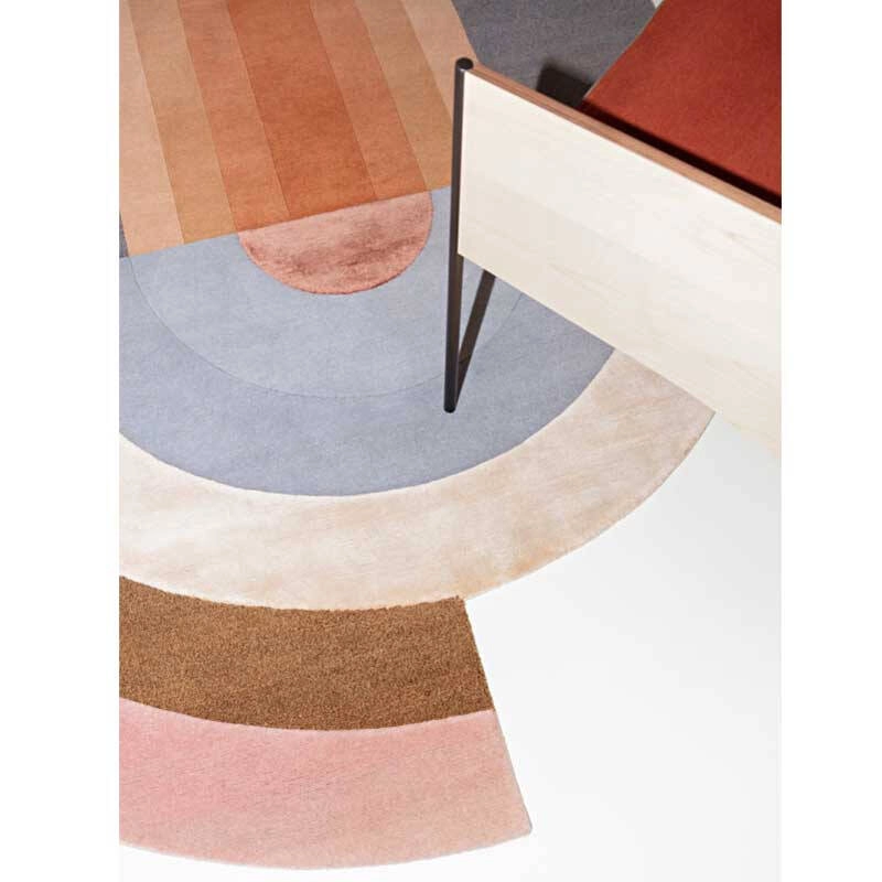 Editée par cc-tapis, la collection de tapis Bliss se caractérise par un effet tridimensionnel sculptural qui a été inspiré initialement des expérimentations de Mae Engelgeer autour des formes rondes et courbes. Ce travail arrive après une période où la designer travaillait uniquement sur des lignes droites et, finissant par se sentir enfermée par celles-ci, elle a ressenti le besoin d’utiliser des formes plus audacieuses. En gardant en tête l’aspect ludique du mouvement Memphis et en mixant les motifs et les formes avec différentes techniques de production, la collection Bliss est née. La réalisation en laine de l’Himalaya et en soie, associée au travail des formes et des couleurs, crée des effets de brillance et de profondeur uniques. Editée par cc-tapis, chaque tapis est fabriqué entièrement à la main au Népal.