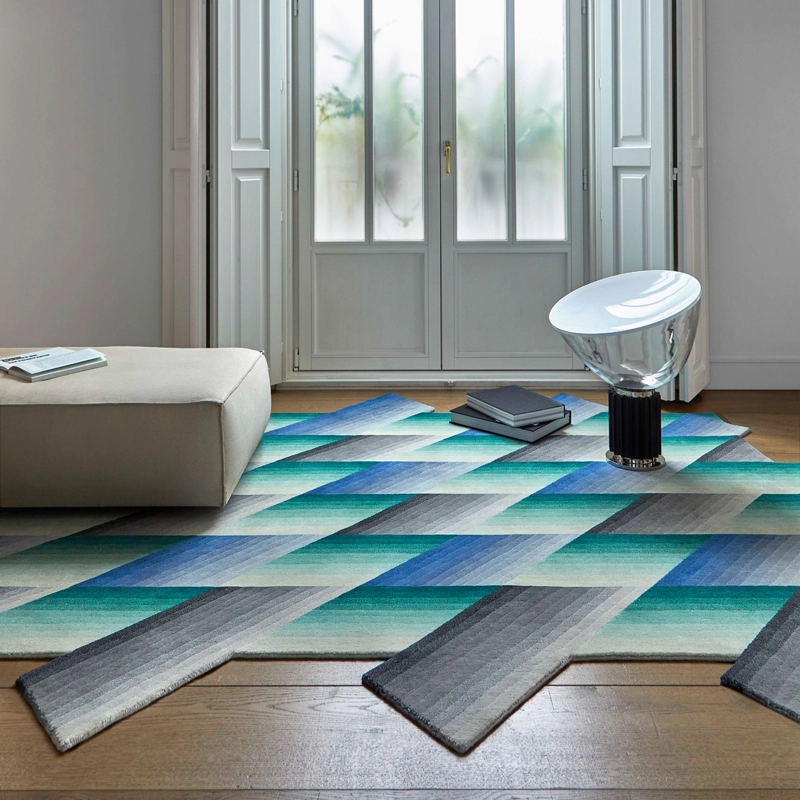 Avec Mirage, Patricia Urquiola crée pour Gan une série de tapis aussi élégante qu’étonnante. Couleur, géométrie et superposition sont combinées pour un résultat captivant. Les différents dégradés de couleur donnent de la profondeur au motif, tandis que les bords irréguliers le démarque des tapis traditionnels tout en facilitant son intégration harmonieuse dans une pièce. Edité par Gan, le tapis Mirage est entièrement noué à la main en pure laine de Nouvelle-Zélande.