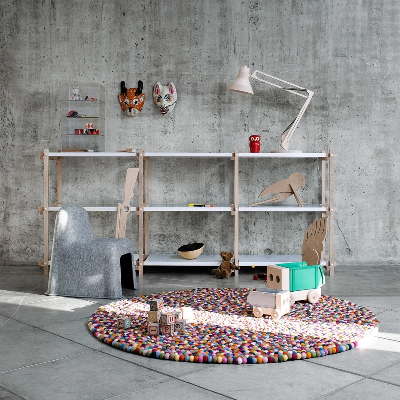 Pinocchio tire son nom d'une friandise danoise : « les boules Pinocchio », qui sont de petites billes de réglisse colorées recouvertes de sucre. Ce tapis rond, édité chez Hay, reprend ce motif et vous donne le sourire avec ses couleurs vives et tonifiantes. Réalisée au Népal, chaque boule est fabriquée à la main puis enfilée sur un fil tel un collier de perles. Original, graphique et joyeux, Pinocchio est un carnaval de confettis multicolores qui égaye la chambre tout en apportant le confort et le moelleux exceptionnel de la laine.