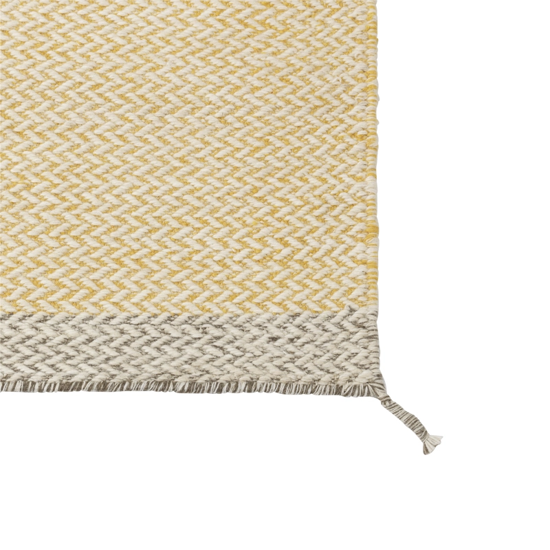 Créée par Margrethe Odgaard, Ply est une série de tapis tissés à la main en laine de Nouvelle Zélande. Décliné dans plusieurs teintes, le tapis Ply, édité par Muuto, est composé d'un motif de chevrons avec des fils de différentes couleurs créant un effet tridimensionnel. Les deux extrémités, réalisées dans une teinte différente, et les coins tressés donnent du caractère à ce tapis, parfait dans une chambre, et empreinte des traditions du tissage. Ainsi, Muuto présente le tapis Ply comme étant chaleureux et parfait pour décorer votre intérieur.